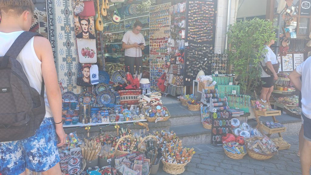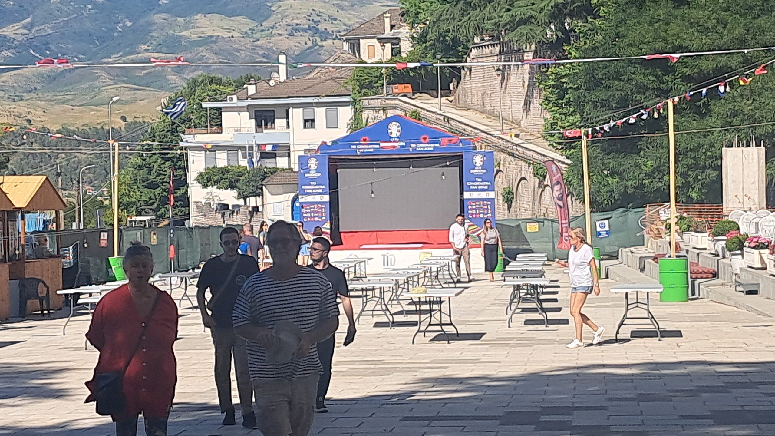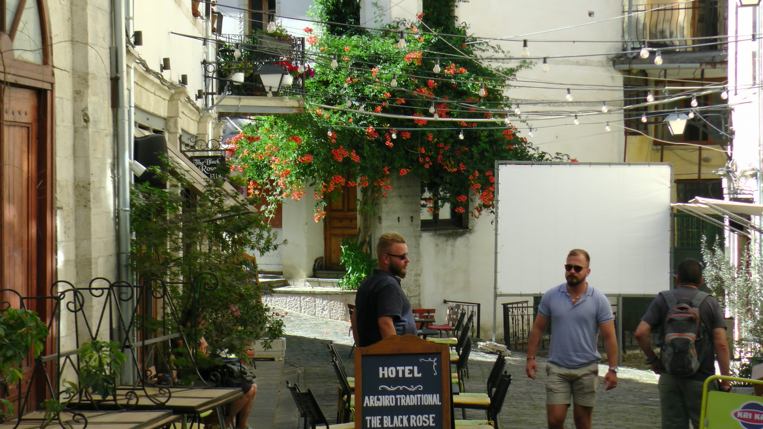 Gegen 11:30 erreichen wir den Campingplatz Gjirokastra. Jutta entschließt sich: heute ist Waschtag. Gegen 14 Uhr machen wir uns auf den Weg in die Stadt und auf die Burg, die auch von Ali Pascha erbaut wurde. Es ist eine große, weitläufige Burg, die genauso nüchtern ausgestattet ist, wie die kleinere in Palermo. Wir treffen hier ein kleines Fernsehteam von der ARD, die einen Reisebericht über Albanien drehen und haben ein sehr interessantes Gespräch mit den jungen Leuten. Auf dem Rückweg zum WoMo essen wir in der Stad noch ein traditionelles Abendessen.