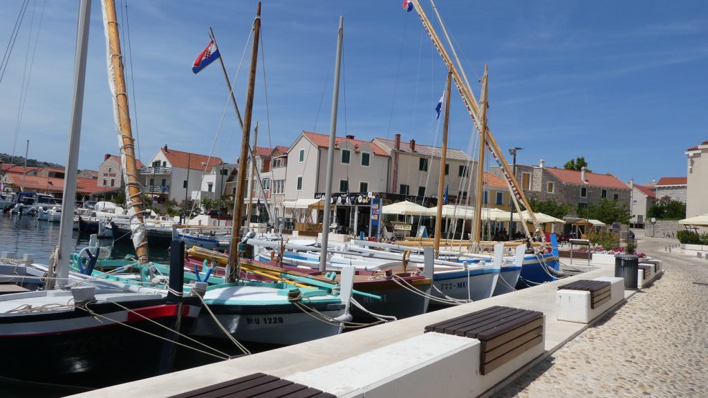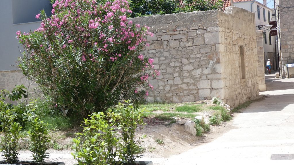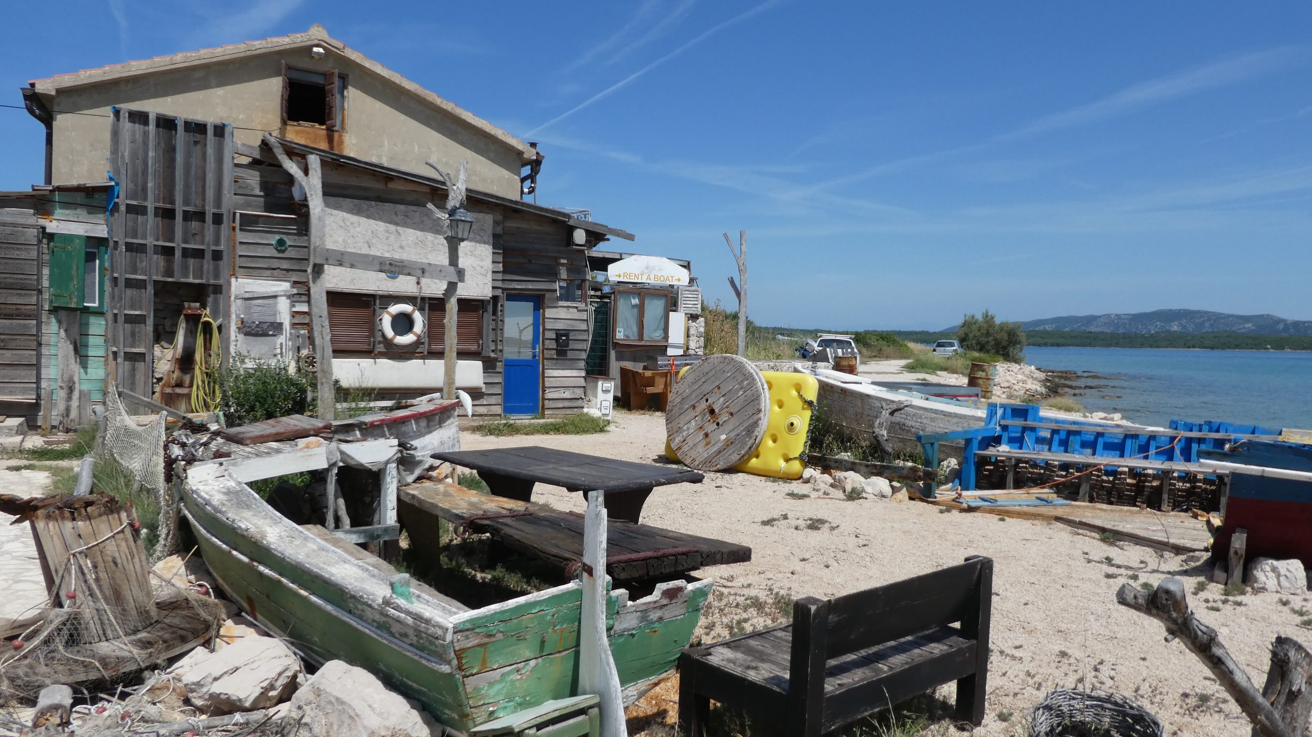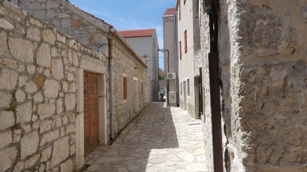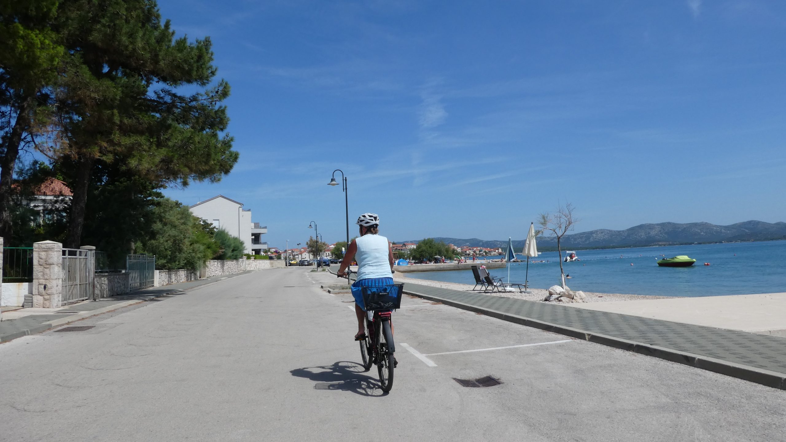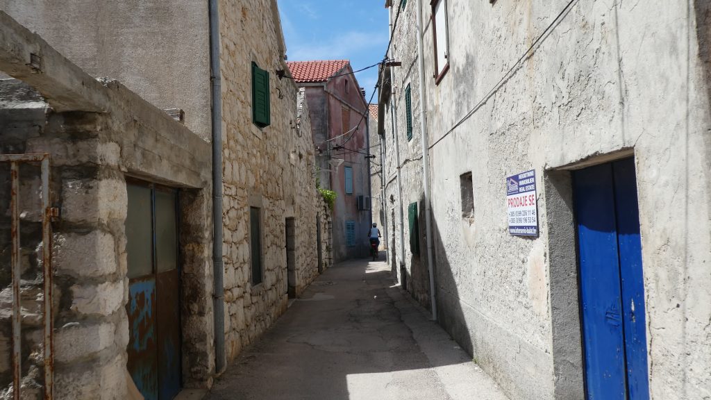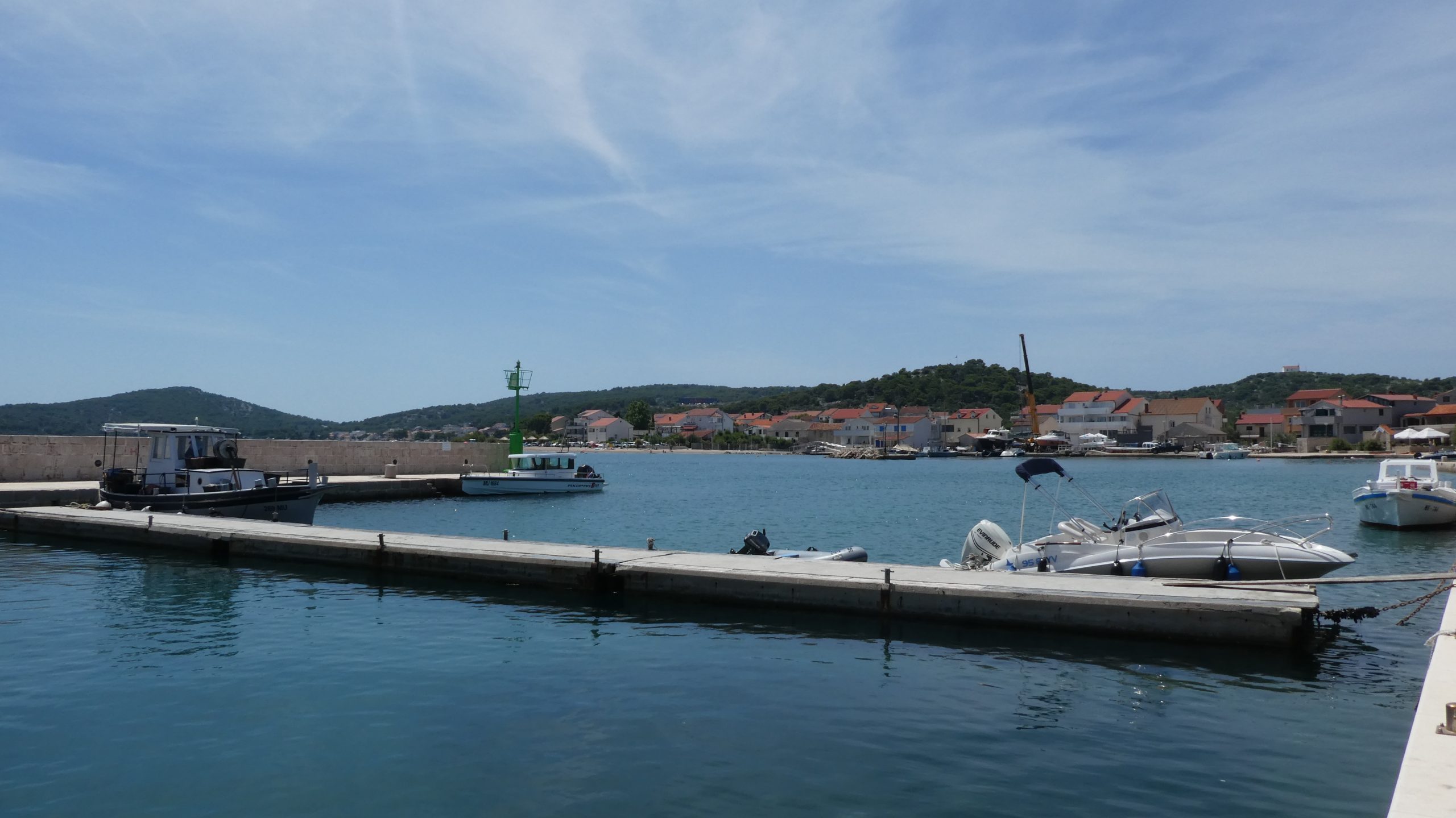 Der Campingplatz bietet ausser der Strandbar, einem Bäcker mit eingeschränkten Öffnungszeiten und einer Obst- und Gemüsehändlerin, die täglich mit Ihrem Auto vorbeikommt, keine Einkaufsmöglichkeiten. Die nächsten Läden sind in Betina und der nächste große Supermarkt befindet sich in der Stadt Murter. Mit dem Fahrrad sind wir die 4km häufiger gefahren. Hier nun ein paar Bilder vom Weg nach Betina und dem Ort.