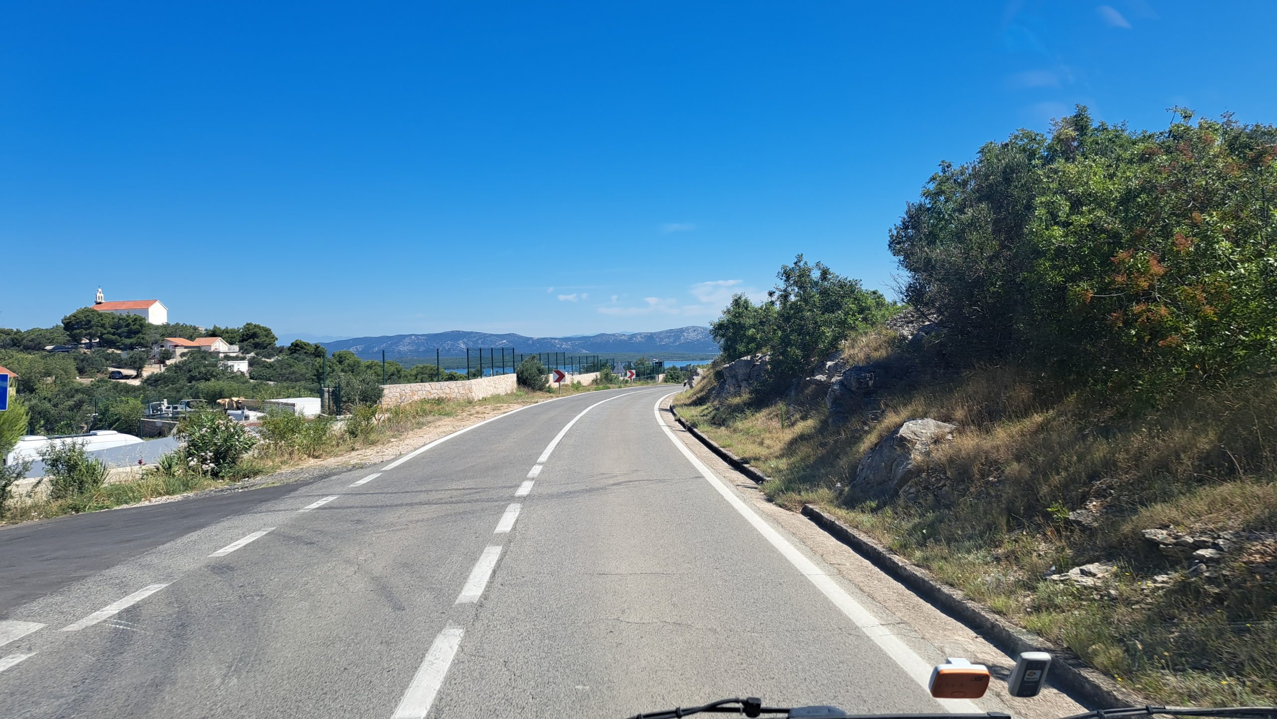 Die letzte Urlaubswoche wollen wir auf der Insel Murter in Kroatien verbringen. Dort kennen wir einen kleinen Campingplatz vom letzten Jahr, der uns gut gefallen hat. Das WoMo ist fertig gepackt. Nach dem Frühstück brechen wir kurz nach 9:00 auf. In Ulcinj kaufen wir ein und tanken, bevor es richtig los geht. Die Küstenstraße E851/E80 fahren wir in Richtung Kotor. Hinter Bar geraten wir in einen Stau. Ein PKW ist von der Straße abgekommen und im Graben gelandet. Ein überforderten Polizist telefoniert eifrig… der Verkehr regelt sich selbst um die Unfallstelle herum. Dann erwischt uns das erste Gewitter mit heftigem Regen. Das Wasser schießt von abschüssigen Nebenstraße auf die Hauptstraße. Gullies gibt es nicht. Schnell bilden sich riesige Wasserlachen auf der Straße. Einige Autos halten an, um den Regen abzuwarten. Wir fahren weiter.