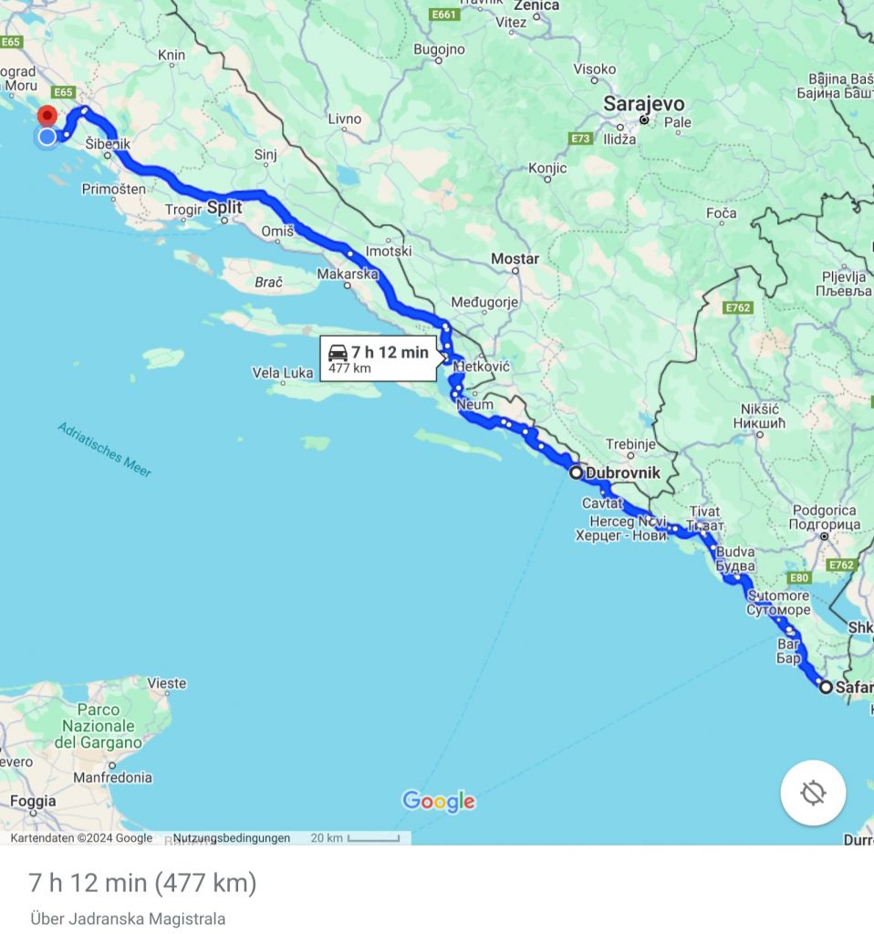 5.Juli 2024…. fast sieben Wochen Urlaub liegen hinter uns, wir haben Albanien bis zur griechischen Grenze durchquert, einige Tage in Montenegro verbracht und nun ist es an der Zeit von unserem letzten Stopp in Kroatien nach Hause zu fahren. Wir planen am heutigen Tag bis Freilassing, direkt hinter der Grenze zwischen Östereich und Deutschland, zu kommen, dort zu über nachten und dann am nächsten Morgen nach dem Frühstück weiterzufahren.