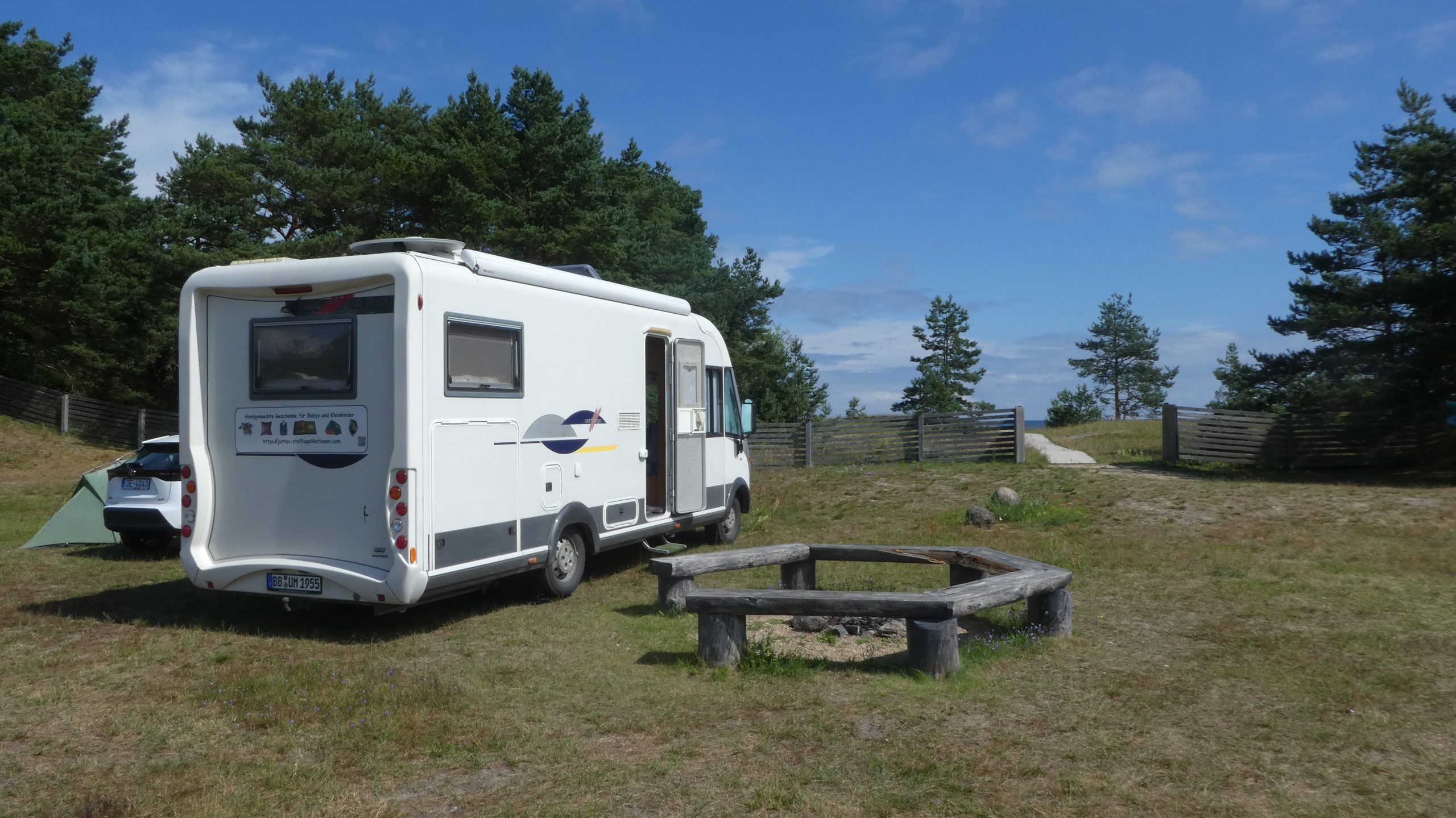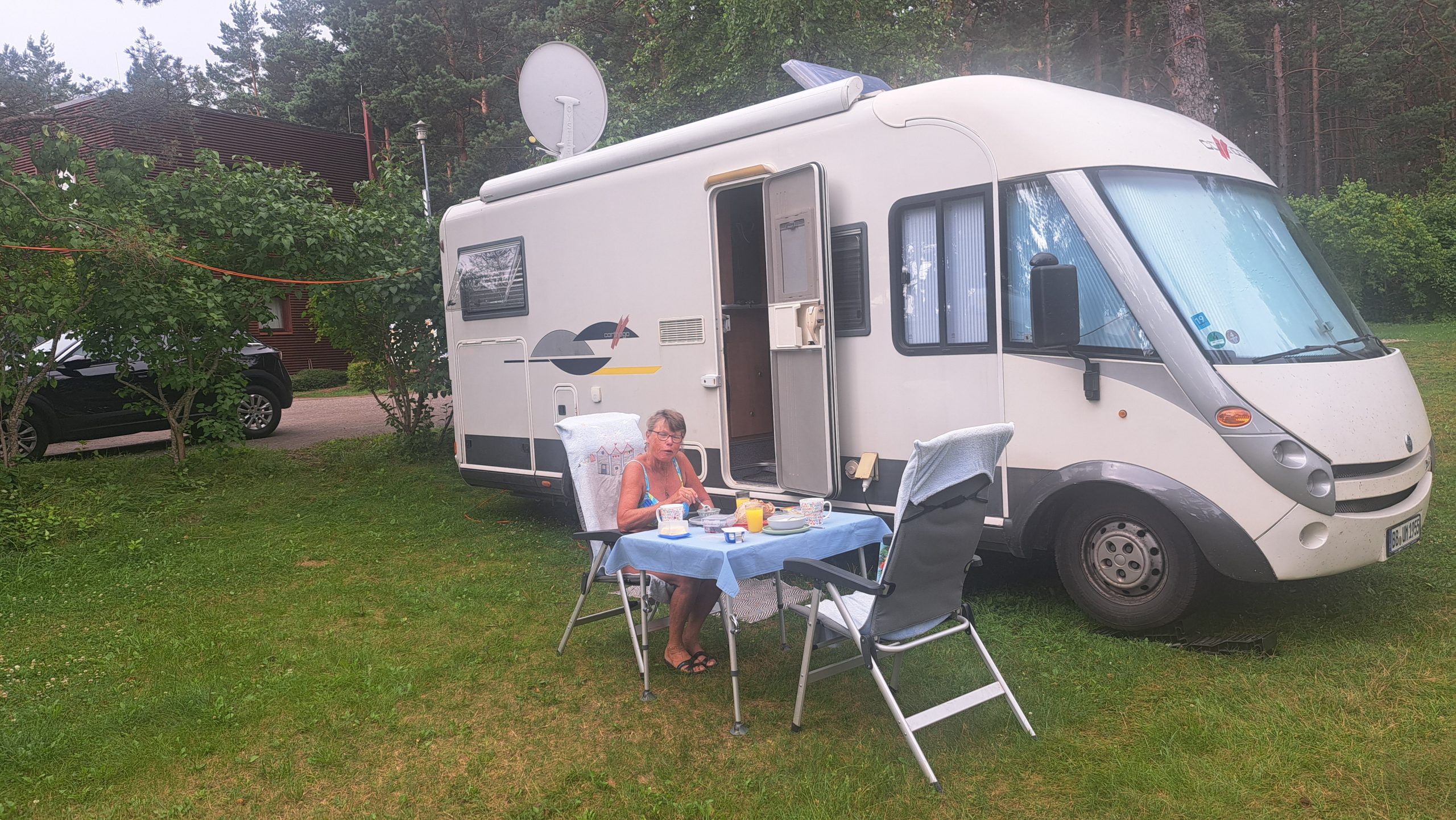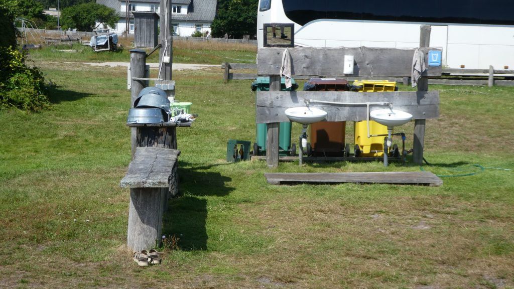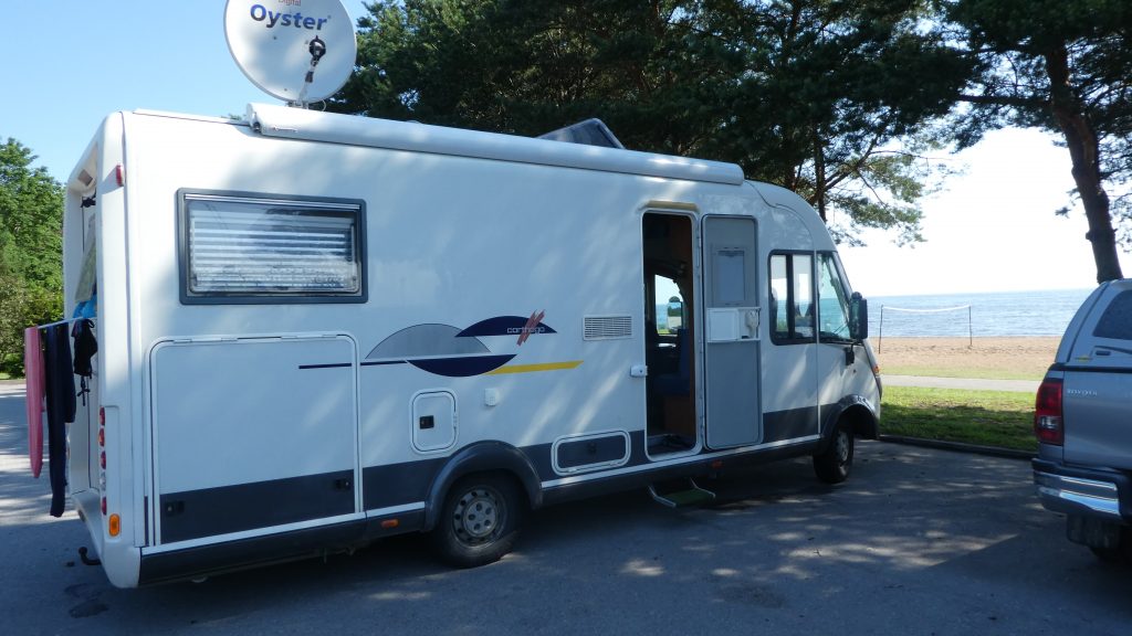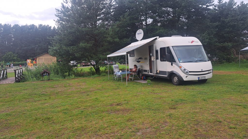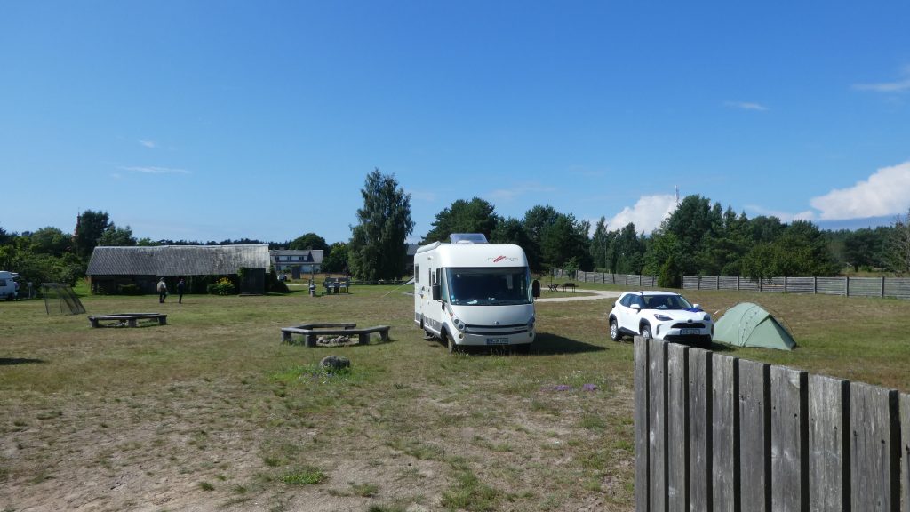 21. bis 24.Juli 2025 Die letzten Etappen in Richtung Liepaja sind als Badeetappen geplant. Nach den letzten freistehenden Übernachtung steuern wir nun den Campingplatz in Abragaciems bei Encura in der Bucht von Riga an, um Wasser aufzufüllen und die Chemietoilette und den Grauwassertank zu entleeren. Der Campingplatz ist einfach gehalten. Für Wohnwagen und Wohnmobile gibt es eine recht unebene Wiese, auf die maximal 10 Fahrzeuge passen. Ansonsten stehen ältere und moderne Holzhäuschen für Urlauber zur Verfügung. Die Sanitäranlagen sind sauber und ausreichend. Allerdings gibt es in den Duschkabinen keine Haken oder Ablagemöglichkeiten… die Wassertemperatur ist vorgegeben und läßt sich nicht einstellen. Zwei Dinge sind nicht gut: es gibt nur zwei Waschbecken für Geschirr, die ungepflegt und bei denen die Abflüsse undicht sind und für die Entsorgung gibt es keinen ebenerdig Einlaß… das Rohr für Grauwasser und Chemietoiletten ragt etwa 70cm aus dem Boden, was eine normale direkte Entsorgung oder über einen Schlauch unmöglich macht. Für 20€ pro Nacht (zwei Personen, Wohnmobil, Strom und Duschen) ist es aber ok.