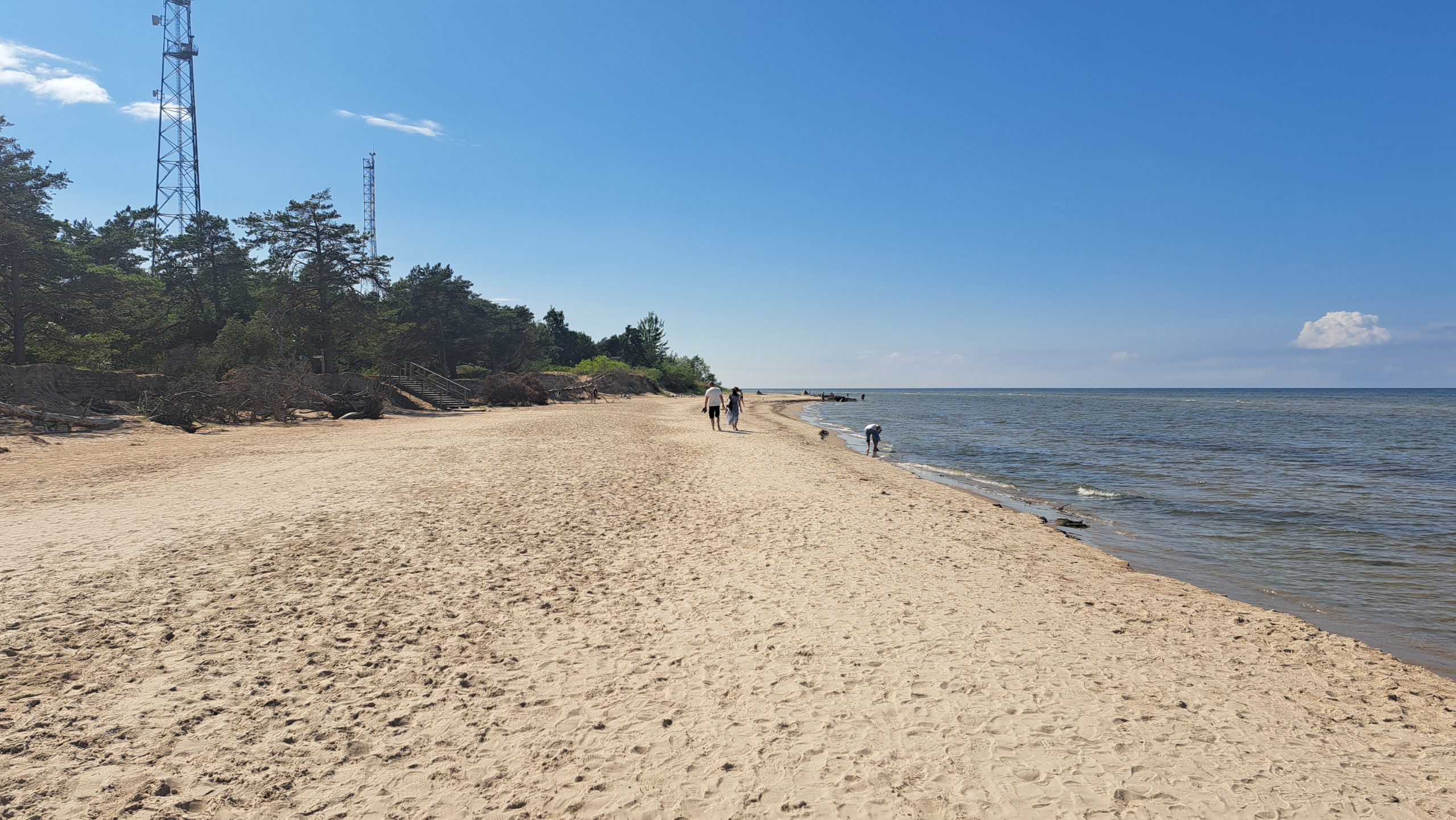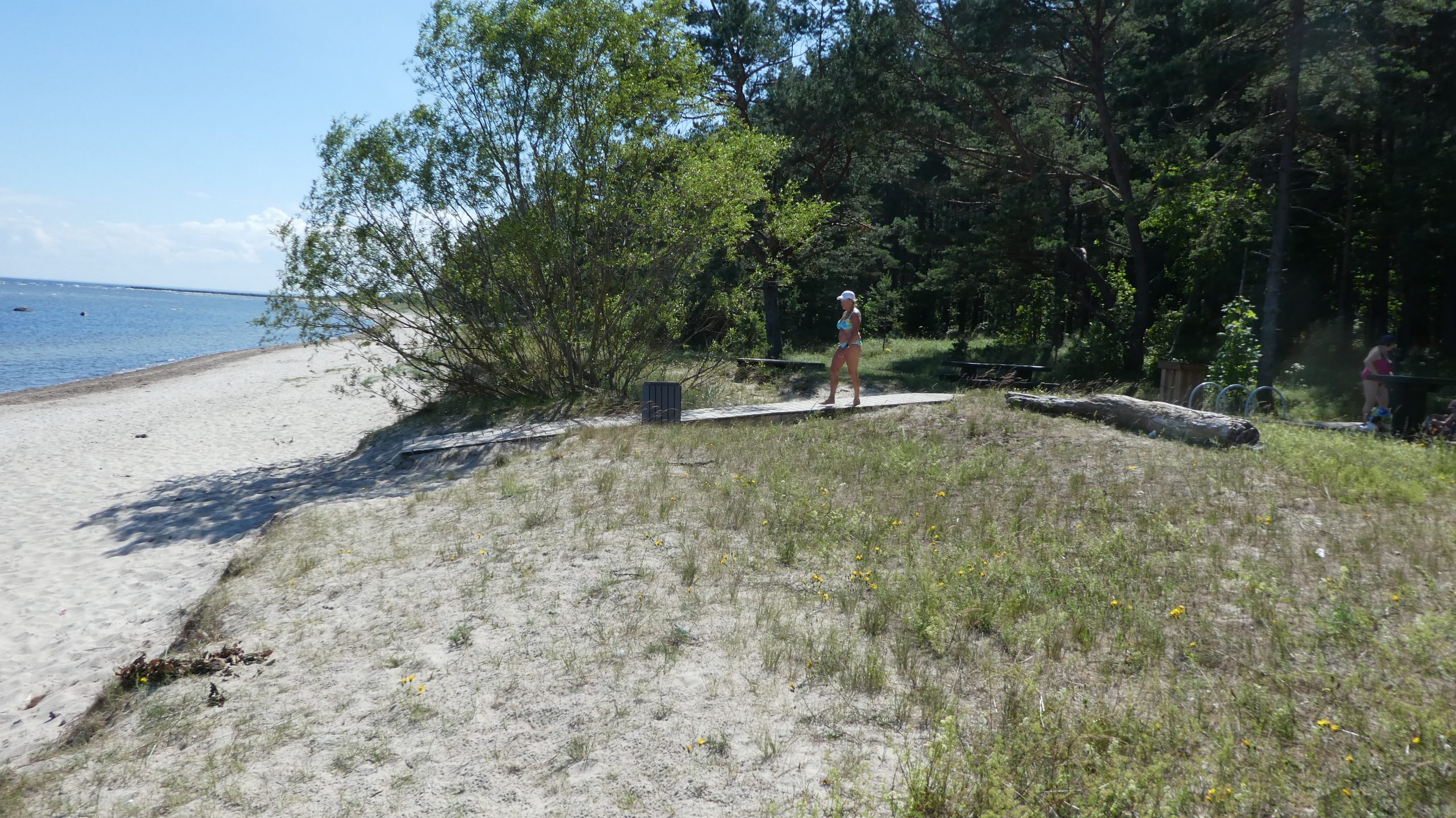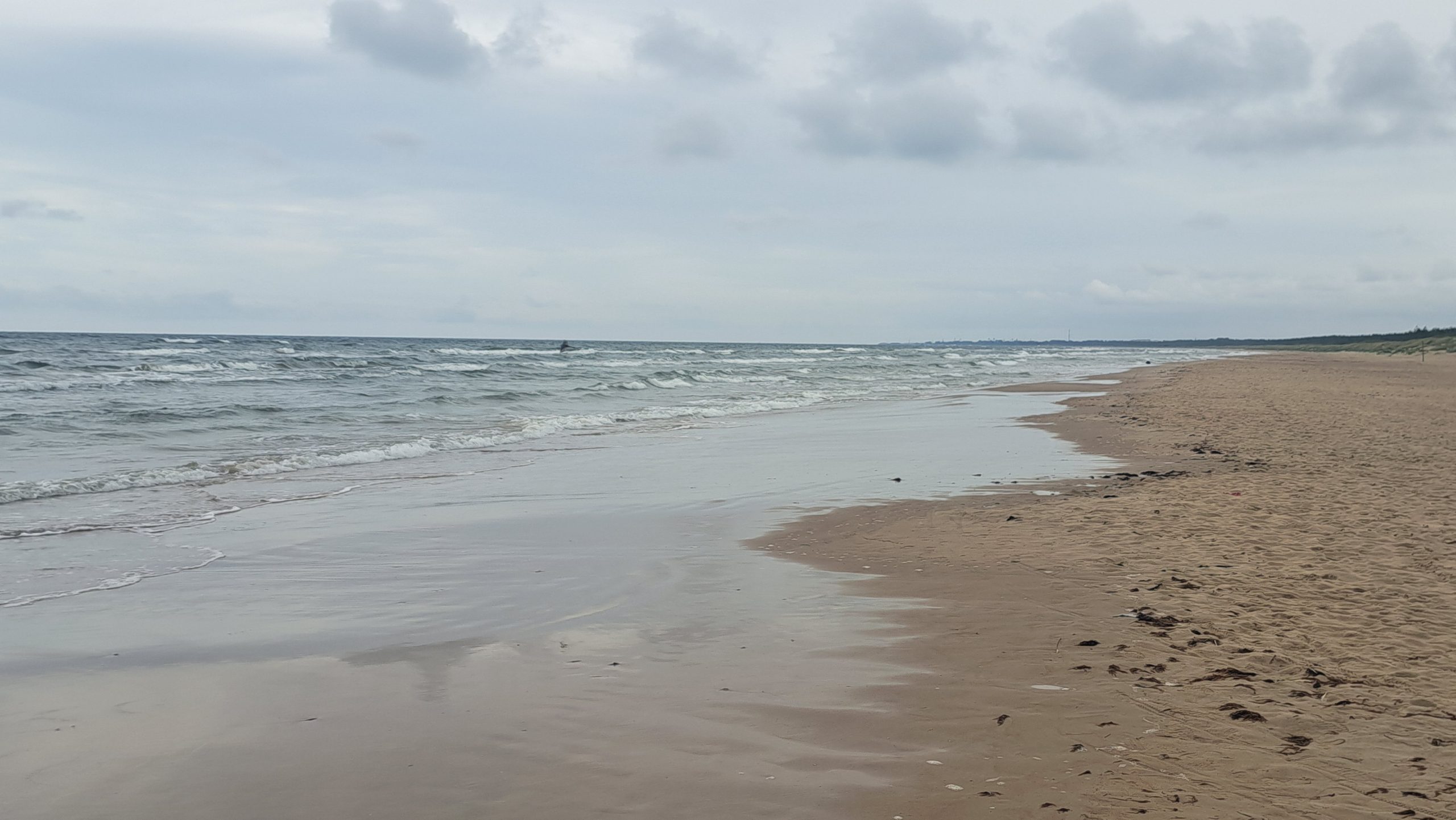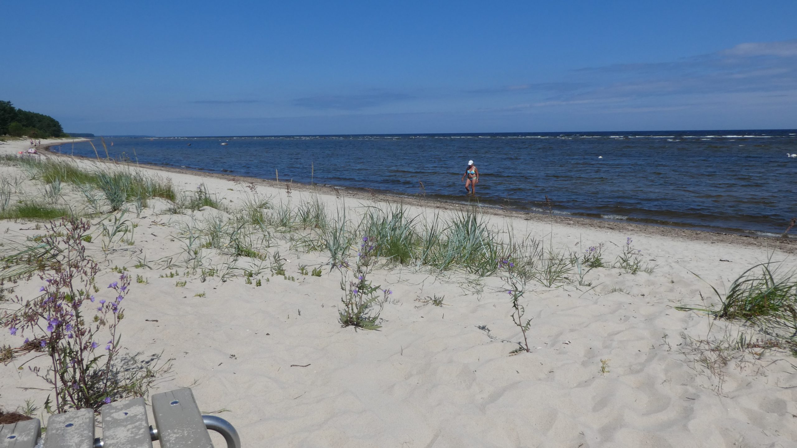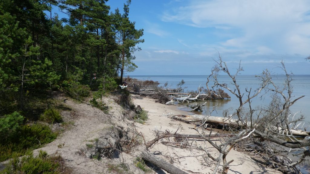 Der Strand am Campingplatz ist gepflegt und wird von angespültem Seegras befreit. Das Wasser ist extrem flach… man muss etwa 300m über mehrere Sandbänke laufen, um einigermaßen schwimmen zu können. Das haben wir allerdings bei allen Stränden in der Bucht von Riga so gehabt. Wir machen einen Strandspaziergang nach Engure, das ca 4km entfernt liegt. Der Ort hat nicht viel zu bieten und wir gehen zurück.