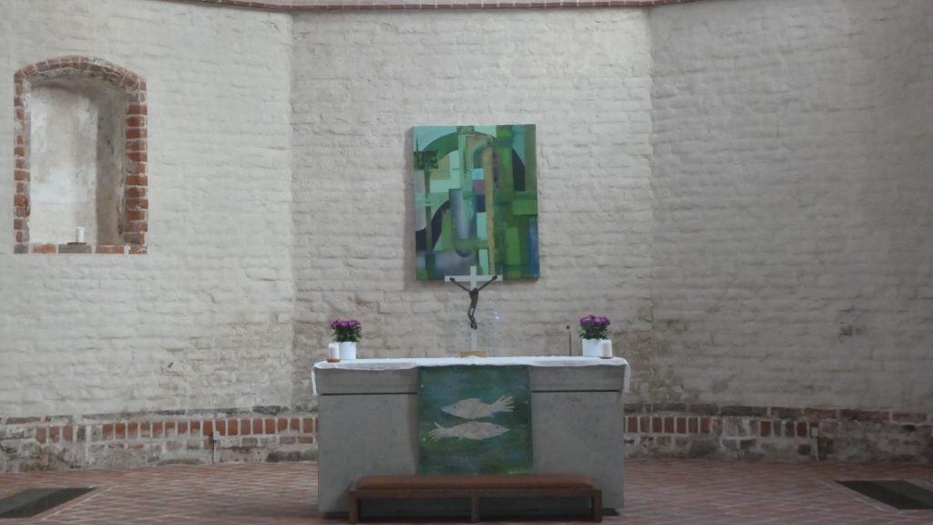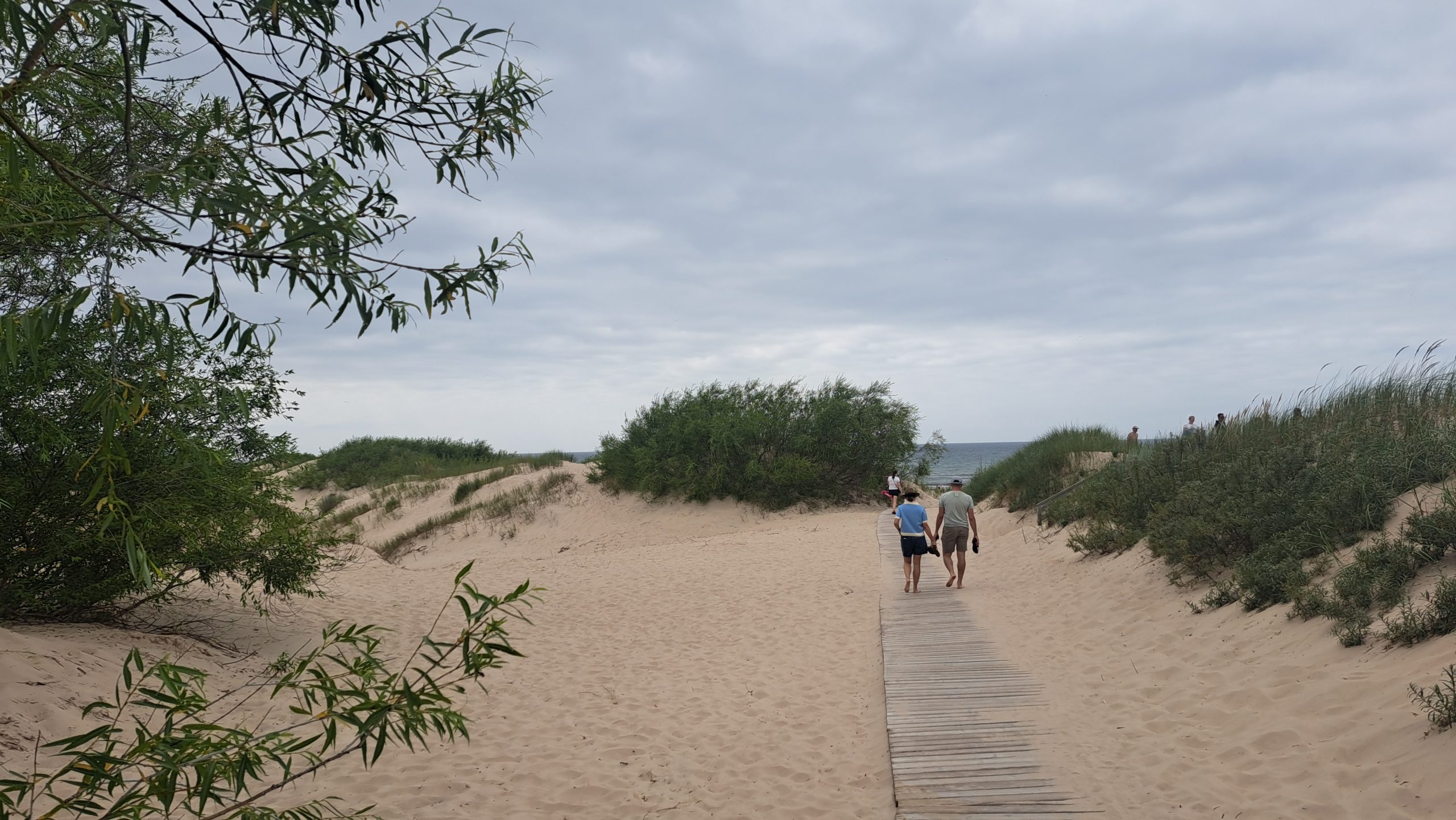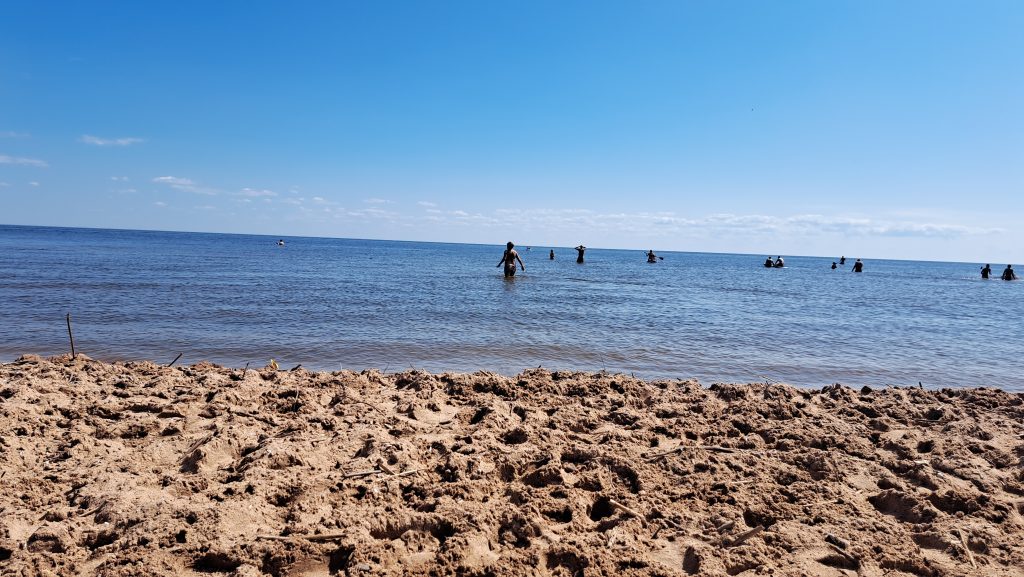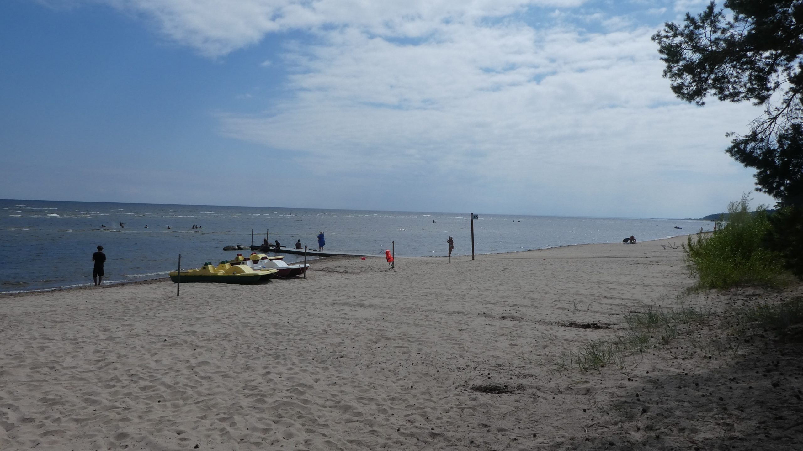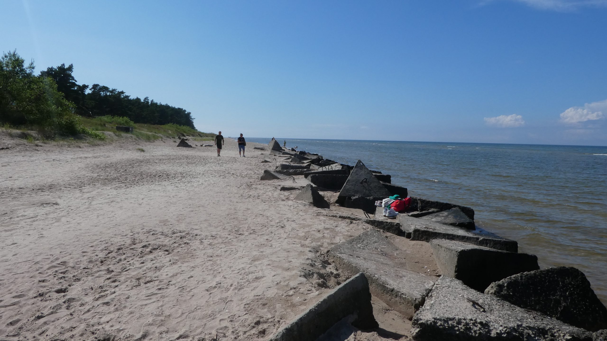 Der Strand am Campingplatz ist gepflegt und wird von angespültem Seegras befreit. Das Wasser ist extrem flach… man muss etwa 300m über mehrere Sandbänke laufen, um einigermaßen schwimmen zu können. Das haben wir allerdings bei allen Stränden in der Bucht von Riga so gehabt. Wir machen einen Strandspaziergang nach Engure, das ca 4km entfernt liegt. Der Ort hat nicht viel zu bieten und wir gehen zurück.
