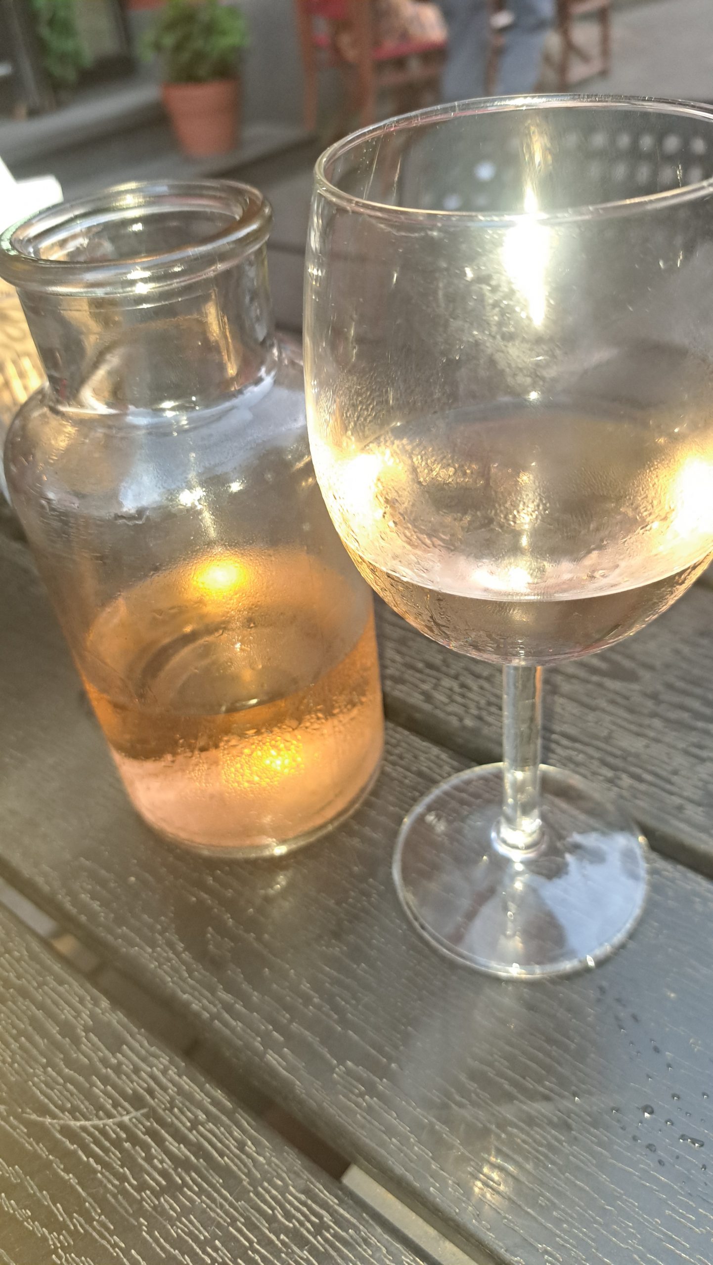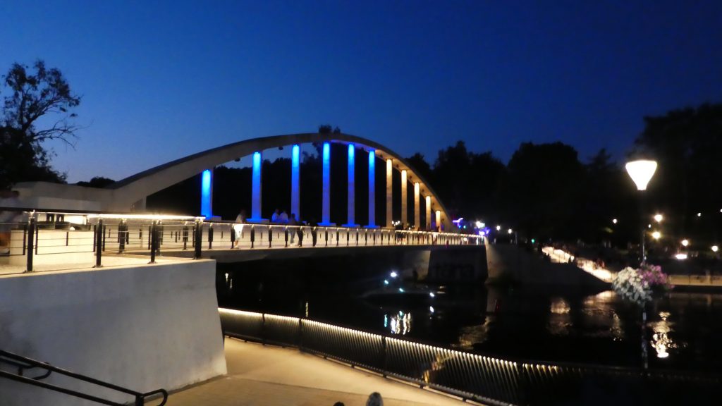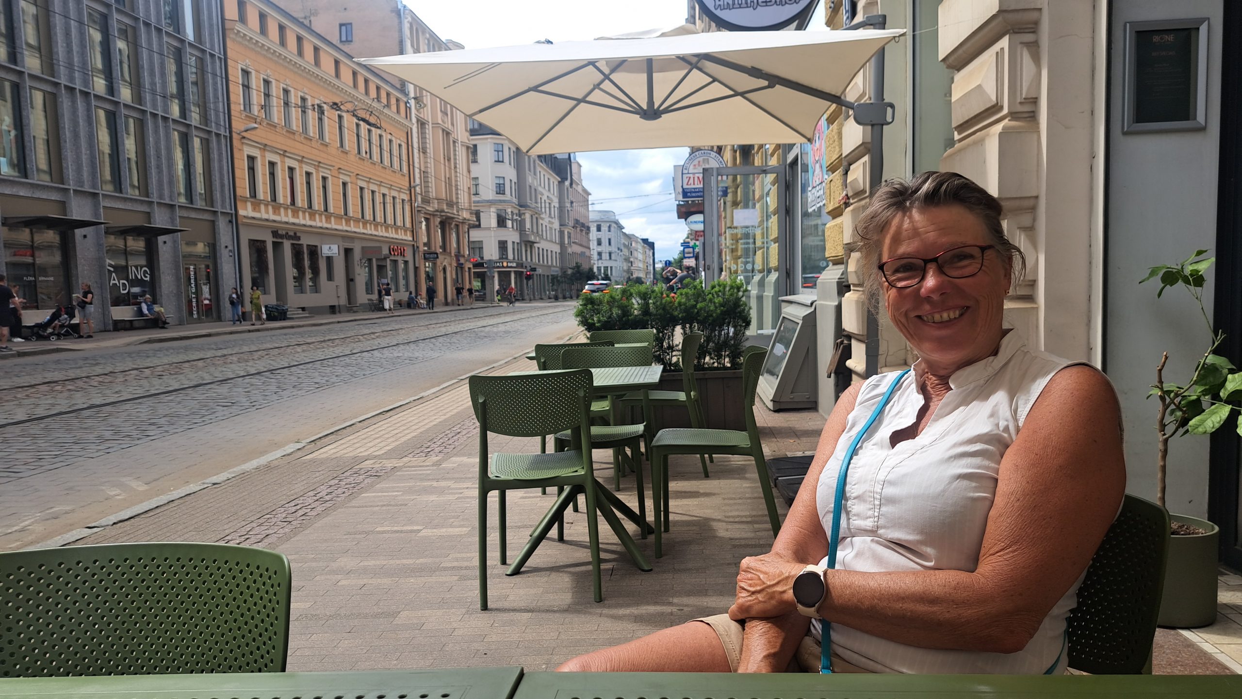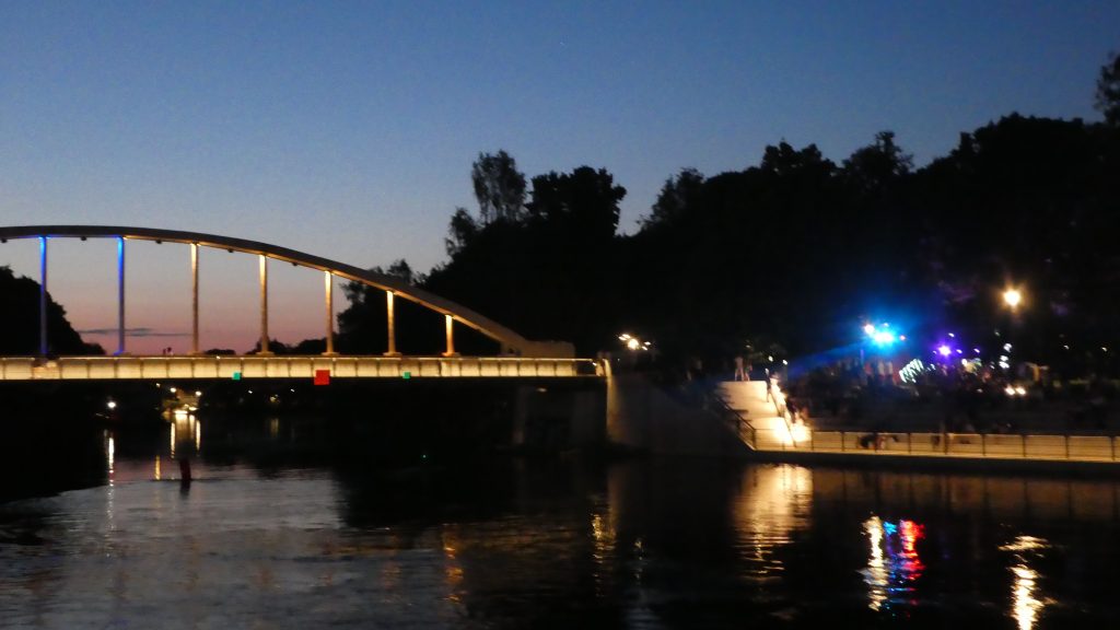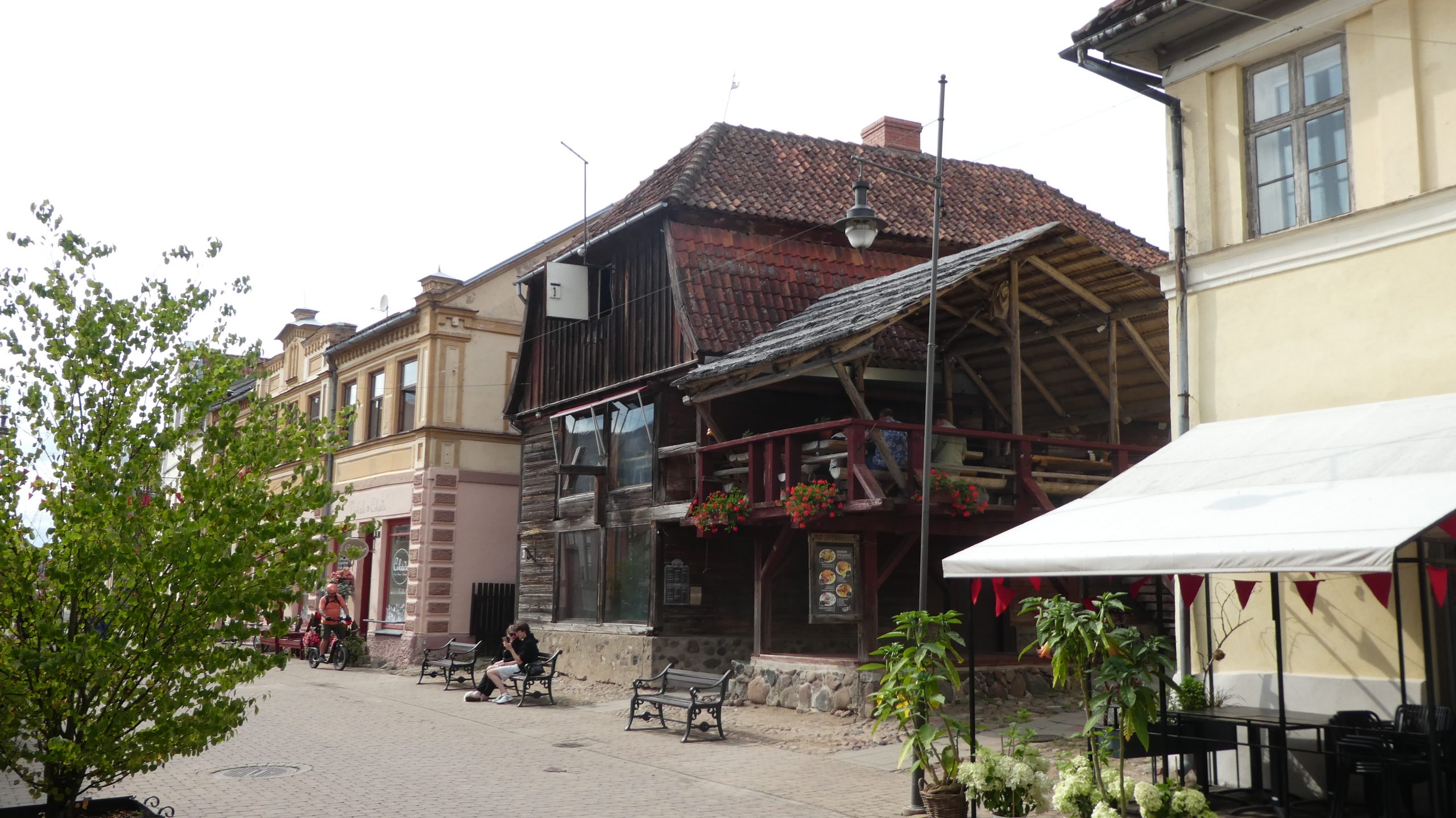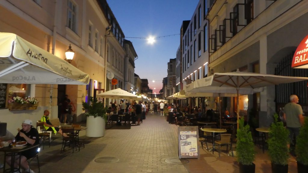 Neben unserem WoMo steht ein großer, neuer Carthago, den wir schon am Kurischen Haff gesehen haben. Von dem Paar, das bereits die zweite Nacht dort steht, erfahren wir, daß ein Besuch der Stadt am Abend noch reizvoller ist. Wir entschließen uns, gegen 21:00 nochmals in die Stadt zu gehen, setzen uns in die erste Reihe in einem Straßenlokal und schauen den flanierenden Menschen zu, die vorbei gehen.