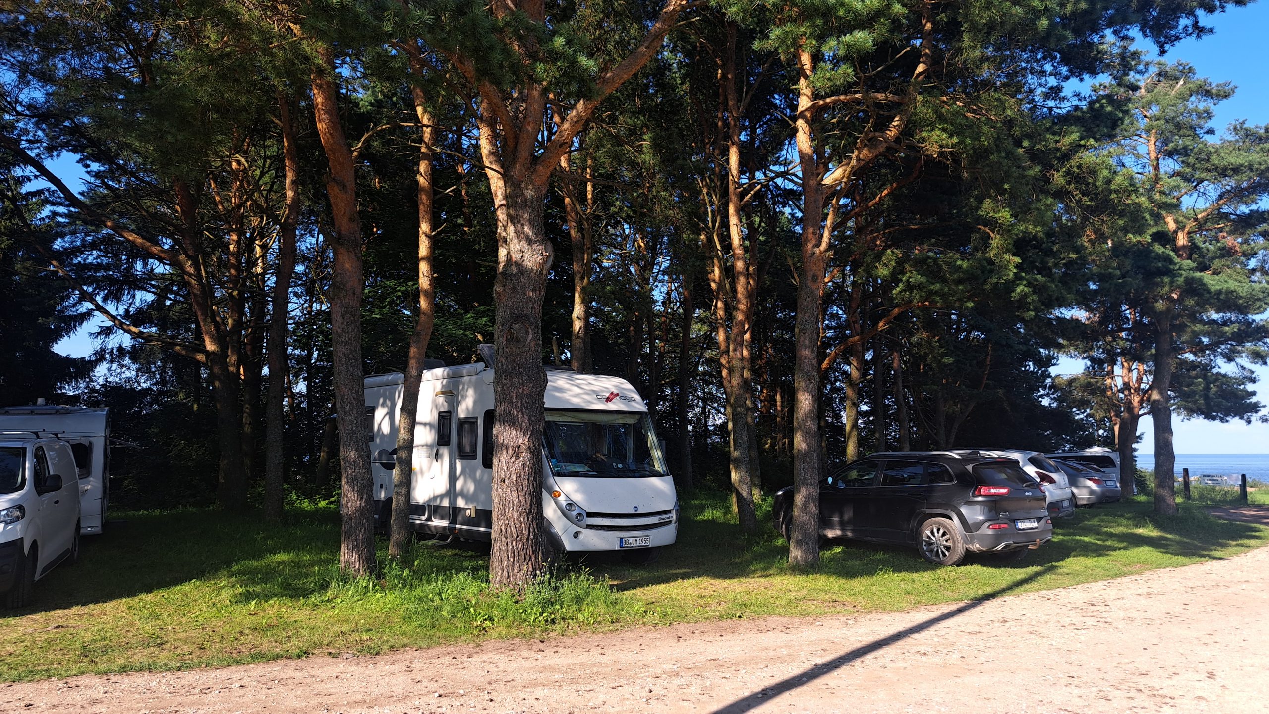 24. – 27.Juli 2025 Frühstücken, entsorgen der Chemietoilette und versorgen mit Frischwasser. Dann geht es weiter zu einem CP am Kap Kolka, der etwa 80km entfernt ist. Kap Kolka liegt an der westlichen Scheide zwischen der Bucht von Riga und der Ostsee…hier trifft frisches Wasser auf das trübe Wasser der Rigaer Bucht. Unser Ziel ist der Campingplatz Usi, ca 1km entfernt vom Kap. Der Platz bietet: zwei Trockentoiletten, zwei Waschbecken, zwei Duschen, das Entsorgen von Grauwasser in einen Tank und die Aufnahme von Frischwasser (20€ pro Nacht). Auf Strom verzichten wir… die Akkus sind voll und die Sonne scheint.