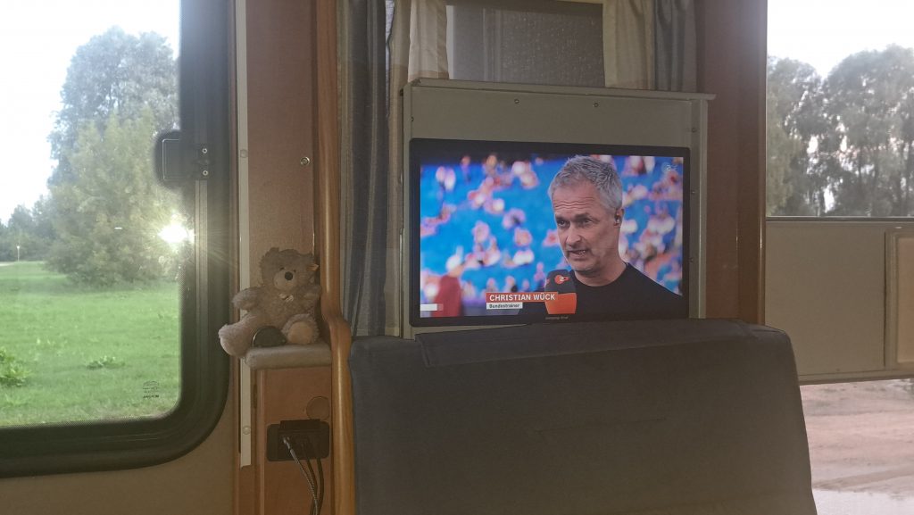 19.Juli 2025 Weiter geht’s. Noch ein gutes Frühstück, den nächsten Übernachtungsplatz festlegen und dann machen wir uns auf die ca 245 km lange Strecke von Tartu nach Riga. Ein Abstecher an einen im Reiseführer empfohlenen See hat sich nicht gelohnt: kein Badestrand und Mücke ohne Ende…wir sind froh, dass wir den ‚Byteaway – Ausbrenner‘ dabei haben, um die Auswirkungen der Stiche zu begrenzen. Wir fahren weiter. Unser Entschluß, auf der größeren der beiden in der Düne liegenden Inseln bei Riga zu übernachten ist gut. Ausser einem Wohnmobil, das scheinbar schon länger dort steht, sind kaum Fahrzeuge und Menschen da. Wir gehen ein paar Schritte und richten uns dann auf das Viertelfinalspiel der deutschenFussballdamen ein, die es spannend machen und erst in der Verlängerung und dem anschliessenden Elfmeterschießen gegen Frankreich gewinnen!
