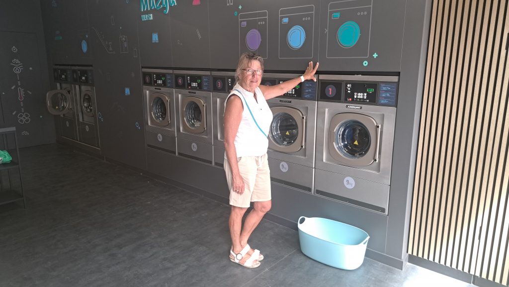 20./21.Juli 2025 Waschtag ist angesagt. Nach der Hälfte der Zeit ist es Zeit ein paar Kleidungsstücke zu waschen (die Bettwäsche hatte Jutta schon vorher auf einem Campingplatz gewaschen). Jutta hat im Internet einen Waschsalon ausfindig gemacht, der auch am Sonntag geöffnet hat. Nach dem Frühstück werden die Fahrräder startklar gemacht, bepackt und los geht’s.