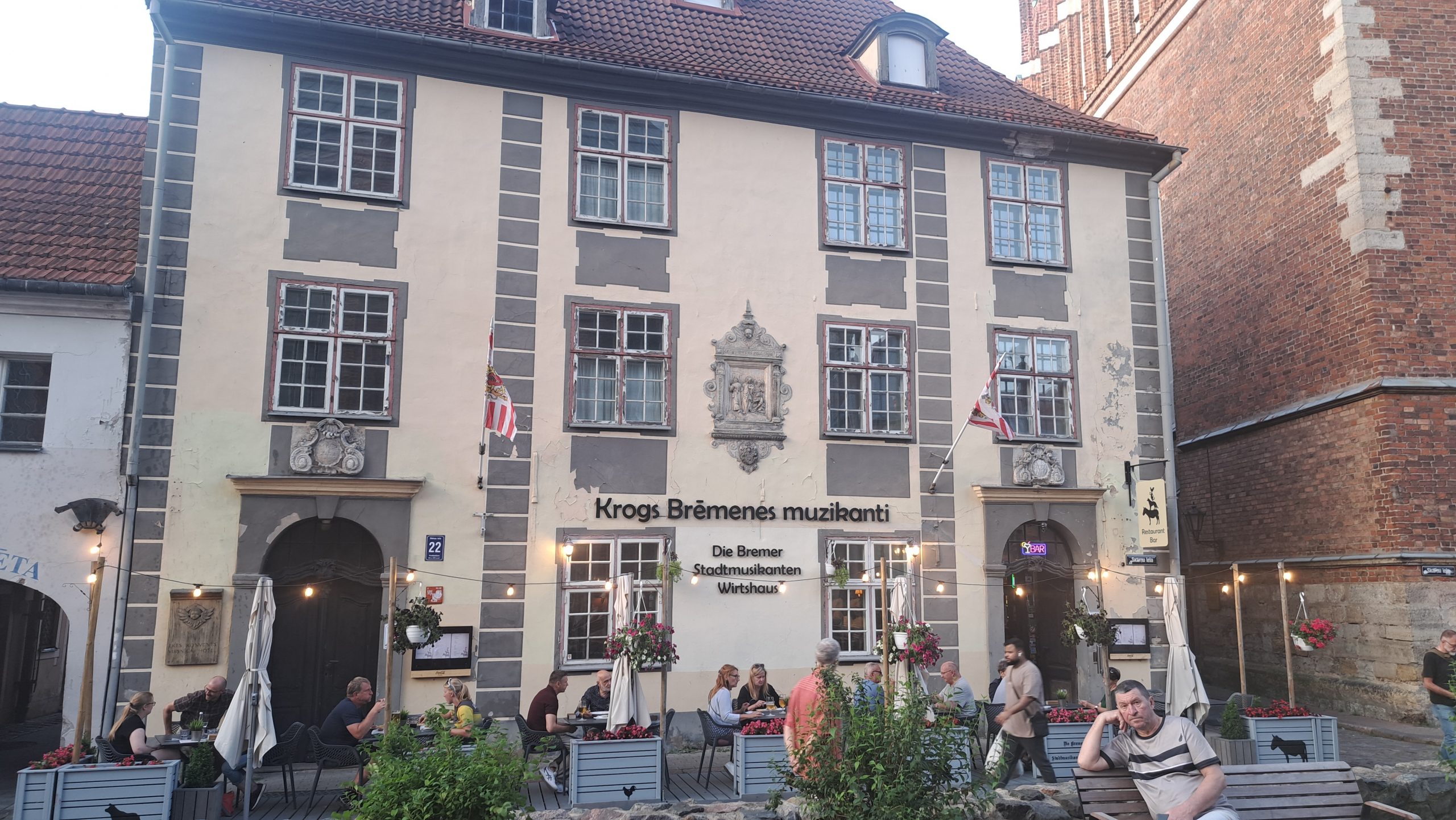 Anschließend und am 21.Juli erkunden wir die Stadt erneut. Vom WoMo sind es ca 20 Minuten / 4km mit dem Fahrrad bis in die Innenstadt von Riga. Die Stadt ist sehenswert. Sie ist lebendig, obwohl sie alt ist. Hier gibt es viele wunderschöne, historische, renovierte und wieder aufgebaute Gebäude. An jeder Ecke gibt es Neues zu entdecken. Die Deutschen haben im Laufe der langen Geschichte von Riga deutliche Spuren hinterlasse. Selbst aus jünerer Vergangenheit gibt es Hinweise auf Deutschland. So ist Riga zum Beispiel die Partnerstadt der Hansestadt Bremen… deutlich sichtbar durch die Bremer Stadtmusikanten und das gleichnamige Restaurant direkt neben der Petrikirche. Wir können uns kaum satt sehen. Einen kleinen Eindruck davon geben die folgenden Bilder wieder.