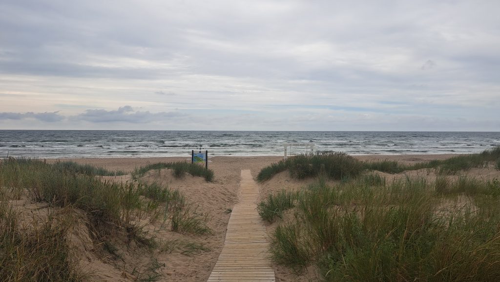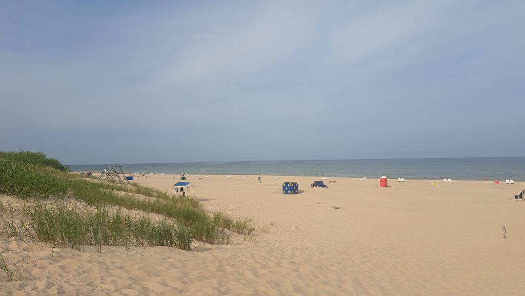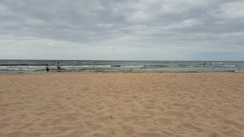 29.Juli 2025 Weiterfahrt nach Liepaja, unserer letzten Station im Baltikum, bevor es zurück nach Deutschland geht. Die Stadt macht keinen einladenden Eindruck. Während der sowjetischen Besatzungszeit war Liepaja militärisches Sperrgebiet. Auch heute fahren wir an einigen Grundstücken vorbei, die noch militärisch genutzt werden. Über Park4Night fahren wir einen Parkplatz in der Nähe des Strandes in Liepaja an, der als Übernachtungsplatz geeignet ist… leider ist der Parkplatz durch Baufahrzeuge und jede Menge Dixi-Klos belegt und der angenzende Park, durch den es an den Strand geht, abgesperrt. Am 1.August findet hier das größte Blues Festval im Land statt. Wir fahren weiter…. der nächste Parkplatz spricht uns auch nicht an. Wir beschließen einen Campingplatz außerhalb von Liepaja anzusteuern, um dort bis zum 31.Juli zu bleiben. Der Reiseführer empfiehlt den CP Verbelnieki. Für 31€ pro Nacht (inkl Strom, Duschen, …) können wir hier bis zur Abfahrt der Fähre am 31.Juli bleiben. Es ist ein sehr moderner Platz mit einer Campingwiese, kleinen Ferienhäusern und einer ansprechenden Gaststätte. Durch den Wald und über eine Düne können wir an den Strand gehen. Leider haben wir seit eineinhalb Tagen sehr durchwachsenes Wetter, dass nicht zum Sonnen einläd…es regnet ab und zu! Die Ostsee ist sehr aufgewühlt und die Wellen überschlagen sich schäumend auf der Sandbank nahe des Strandes.