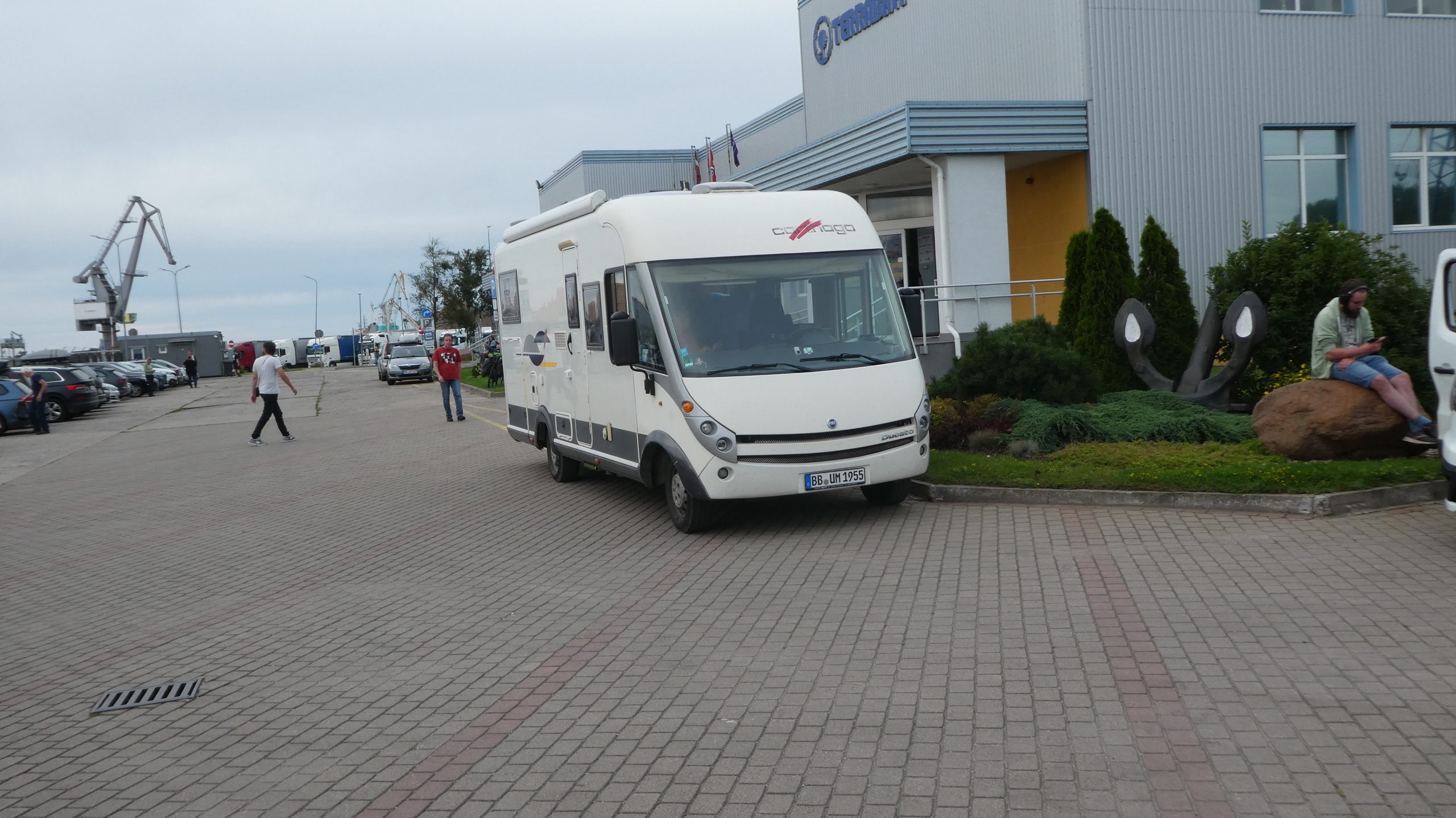 Jetzt ist es soweit.N Im fährhafen vo Liepaja fahren wir zum Stena-Anleger und ‚checken ein‘. Dazu gehört auch das Abrehen der Propangaszufuhr im woMo und d die versiegelung der Zugangstüren zu den Gasflaschen. Um 19:00 sind wir auf die Fähre gefahren, und kurz nach 23 Uhr hat sie dann in Richtung Travemünde abgelegt.
