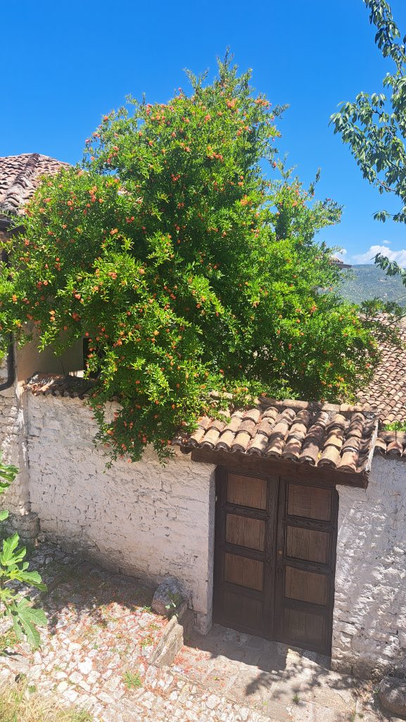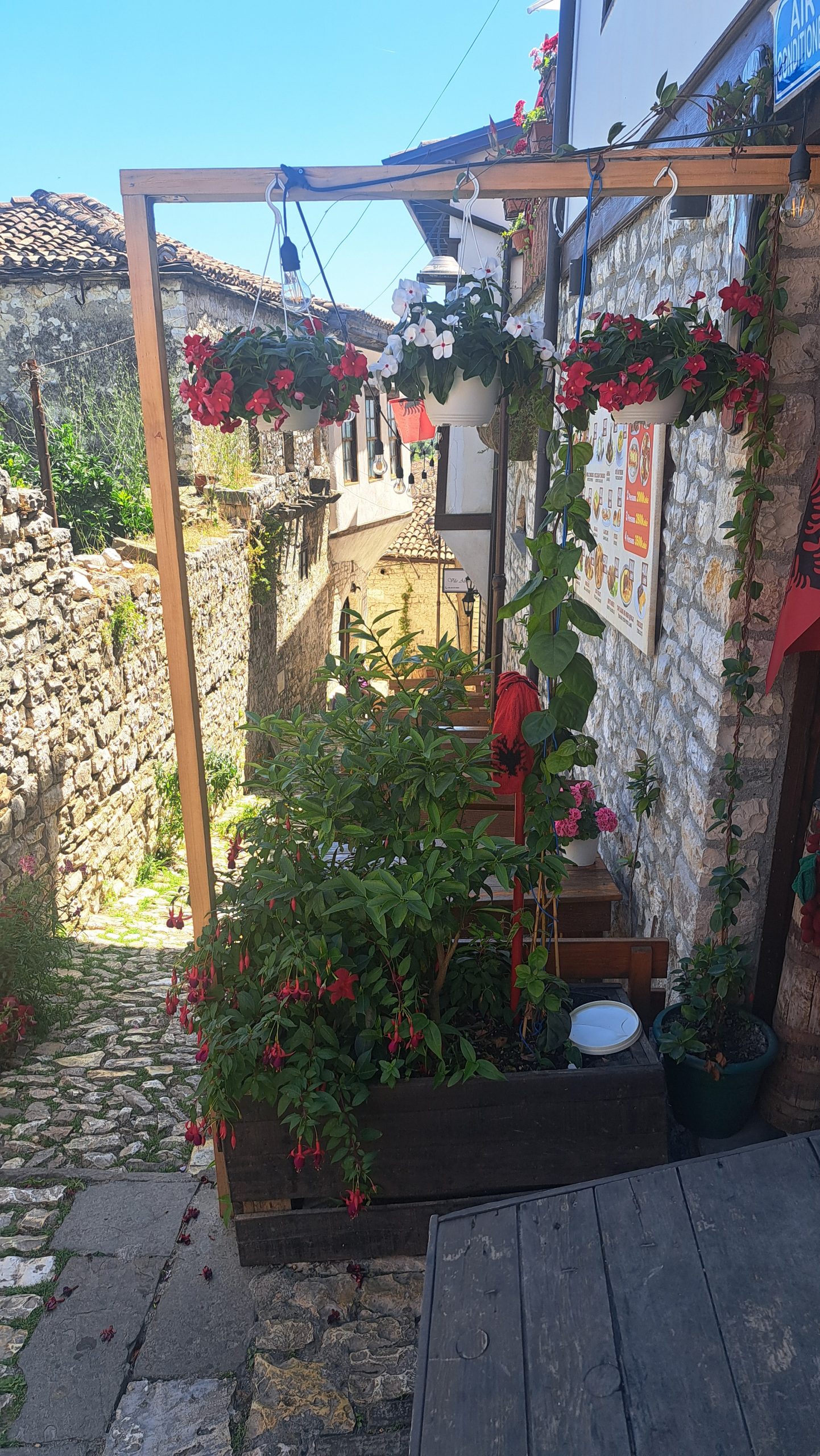 …. gegen 16:30 treffen wir auf dem Riverside WoMo Platz in Berat ein und erhalten einen der letzten Plätze. Zur Begrüßung gibt es einen Obstteller mit einem Apfel und zwei Aprikosen. Für einen Platz, der inkl. Strom, Duschen, usw, 17€ kostet, ist das aussergewöhnlich! Nach dem Abendbrot, es gibt Bauernfrühstück, machen wir uns zu Fuß auf den ca 15 minütigen Weg in die Stadt. Wir sind neugierig, ob die Beschreibungen, die wir bislang erhalten haben, so stimmen. Und ja… die Altstadt auf beiden Seiten des Flusses Osum ist beeindruckend! ….und es wird noch schöner, wenn es dunkel wird und die Lichter in den 1000 Fenstern angehen. Berat ist eine Stadt der Gegensätze, wie viele Städte, die wir in Albanien bisher gesehen haben. Es gibt Armut und Wohlstand. Es gibt alte, gut erhaltene Häuser und solche, die zusammen zu brechen drohen, obwohl noch Menschen darin wohnen. Es gibt ungepflegte Winkel und es gibt eine Fußgängerzone mit europäischen anmutenden Lokalen und Preisen (z. B. Aperolspritz = 7,00€).