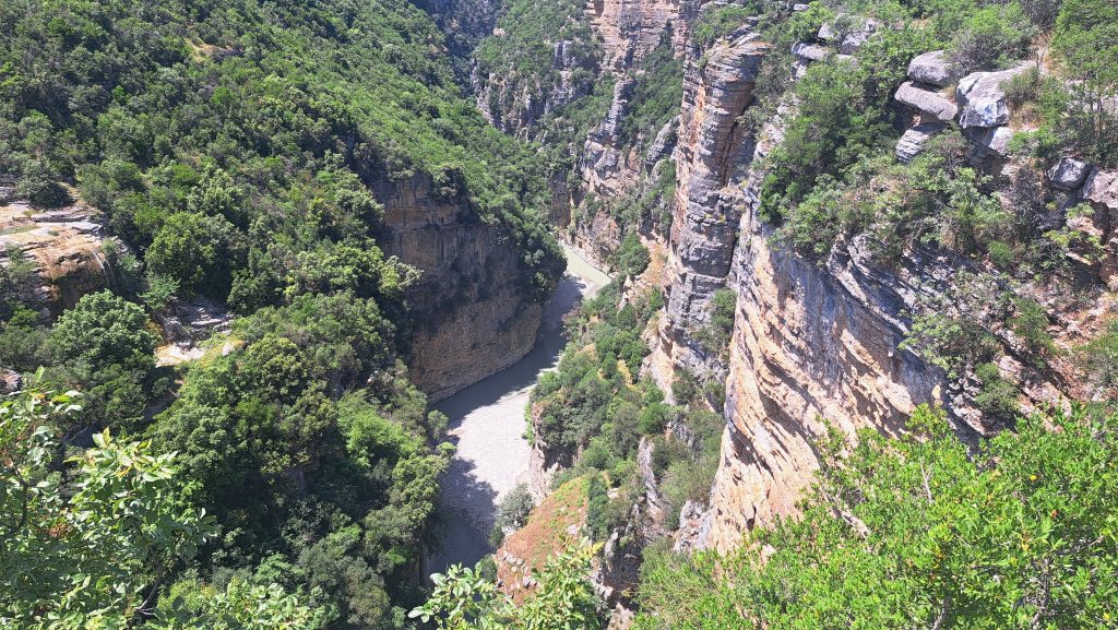 8.Juni 2024: Es gibt immer noch Ausflugsziele, die von Berat zu erreichen sind. Zum Beispiel der berühmte Osum Canyon, der der längste in Europa sein soll. Auch den schauen wir uns an. Für die ca 70km brauchen wir fast 2,5 Stunden. Die Straßen sind nicht die Besten. Es geht in Serpentinen mit bis zu 12% Steigung auf -und dann wieder abwärts. Teilweise sind die Straßen so eng, das Autos kaum aneinander vorbeikommen. Nicht immer einfach für unser betagtes Wohnmobil. Da heute Samstag ist, haben wir Glück und in den Mormorsteinbrüchen und Sägewerken wird nicht gearbeitet…ansonsten muss mit dicken LKWs auf den engen Straßen gerechnet werden. Die Anstrengung hat hat sich, wie die Bilder zeigen, gelohnt.