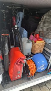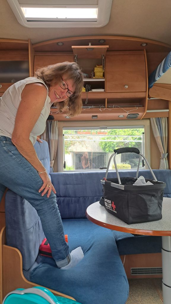 Am 18.Mai ging es um 11:00 Uhr los. Vorher haben wir das WoMo beladen… es ist voll! Gut, dass wir 850kg zuladen können!