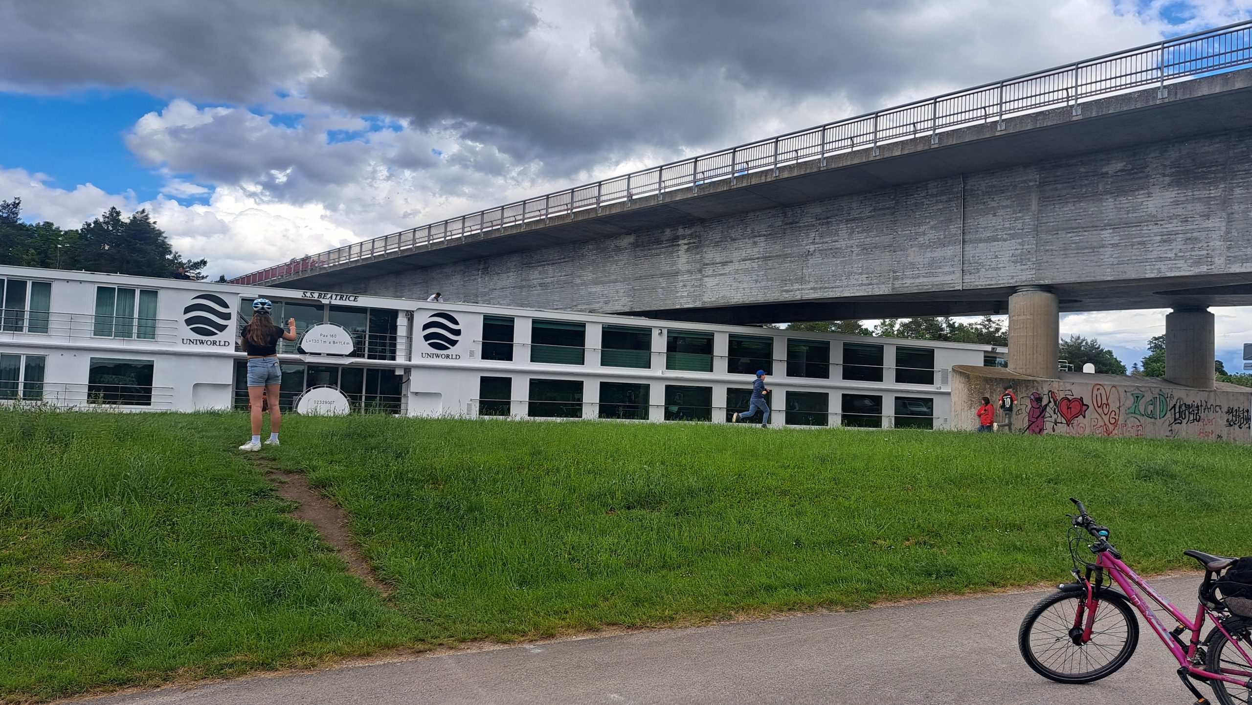19.Mai 2024: heute sollte es Erdbeeren mit Sahne geben. Sahne hatten wir dabei… Erdbeeren wollten wir von einem nahegelegenen, etwa 7km entfernten, Erdbeerfeld holen. Leider waren die Erdbeeren noch grün und wir mussten unterrichtete Dinge zurück radeln….mit einem Stopp an einer Eisdiele in Hilpholtstein. Unterwegs haben wir noch einen Abstecher an den Donau-Mosel-Kanal gemacht und zugeschaut, wie ein Flußkreuzfahrtschiff unter einer Autobahnbrücke hindurchfuhr. Die Passagiere auf dem Oberdeck mußten die Köpfe einziehen! Anschliessend: ein Bier auf dem CP.