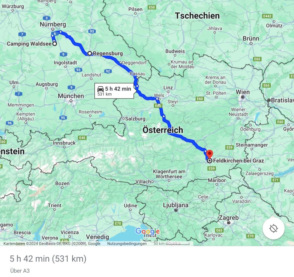 Jetzt geht es über Graz weiter in Richtung Albanien (…dachten wir)