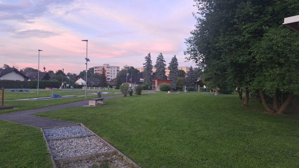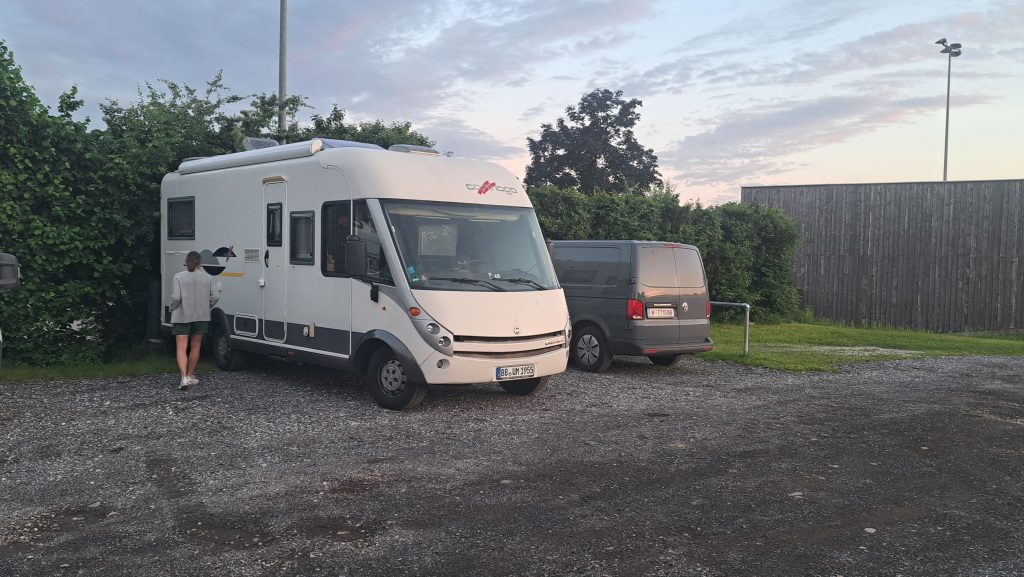 26.5.2024: Für unseren Zwischenstopp hatten wir uns Feldkirchen, einen Vorort von Graz ausgesucht. Ruhig, an einem Spiel- und Minigolfplatz gelegen. Toiletten und Frischwasser waren vorhanden. Zur Autobahn war es auch nicht weit.