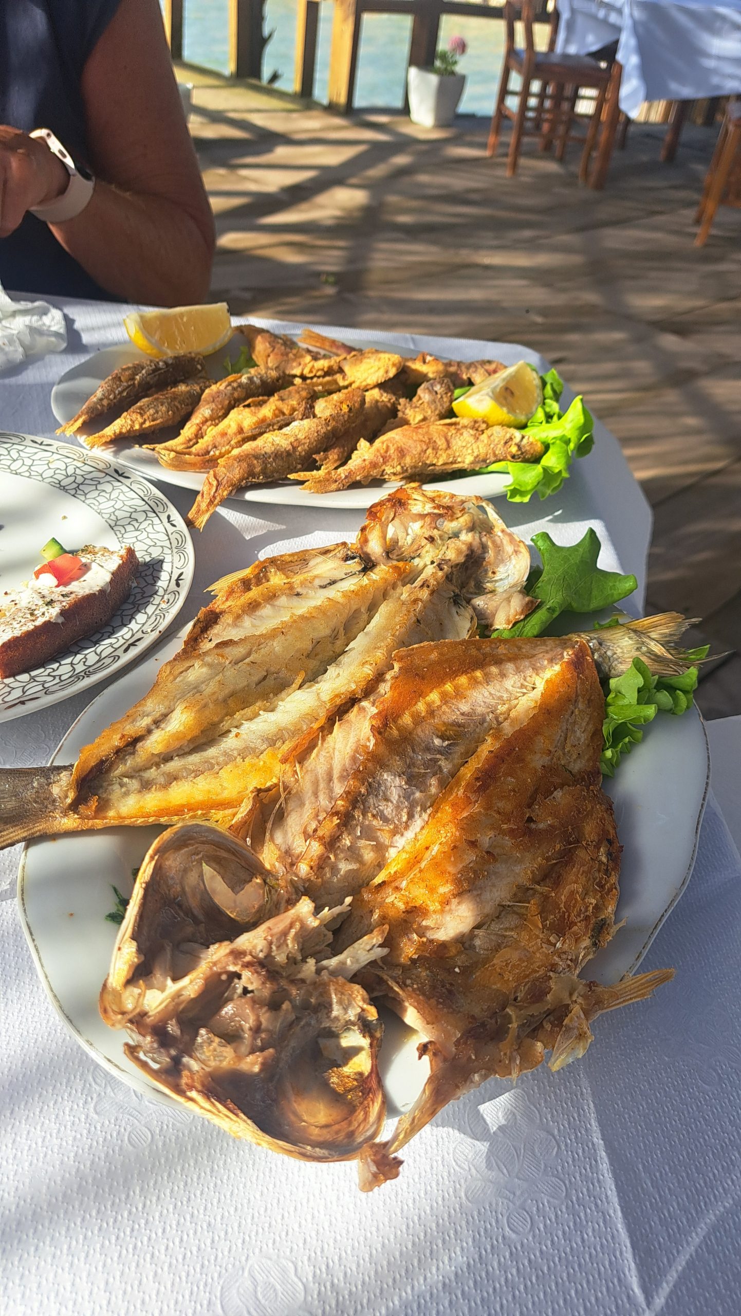 Nun geht es weiter in die Lagune von Patok. Dort soll es Pelikane, Flamingos und viele gute Fischrestaurants geben. Zumindest Fischrestaurants finden wir und kehren ein. Leider sind nicht alle Fische, die auf der Karte angeboten werden, verfügbar. Wir haben trotzdem etwas gefunden und sind satt geworden!