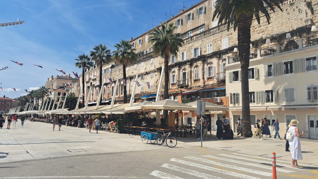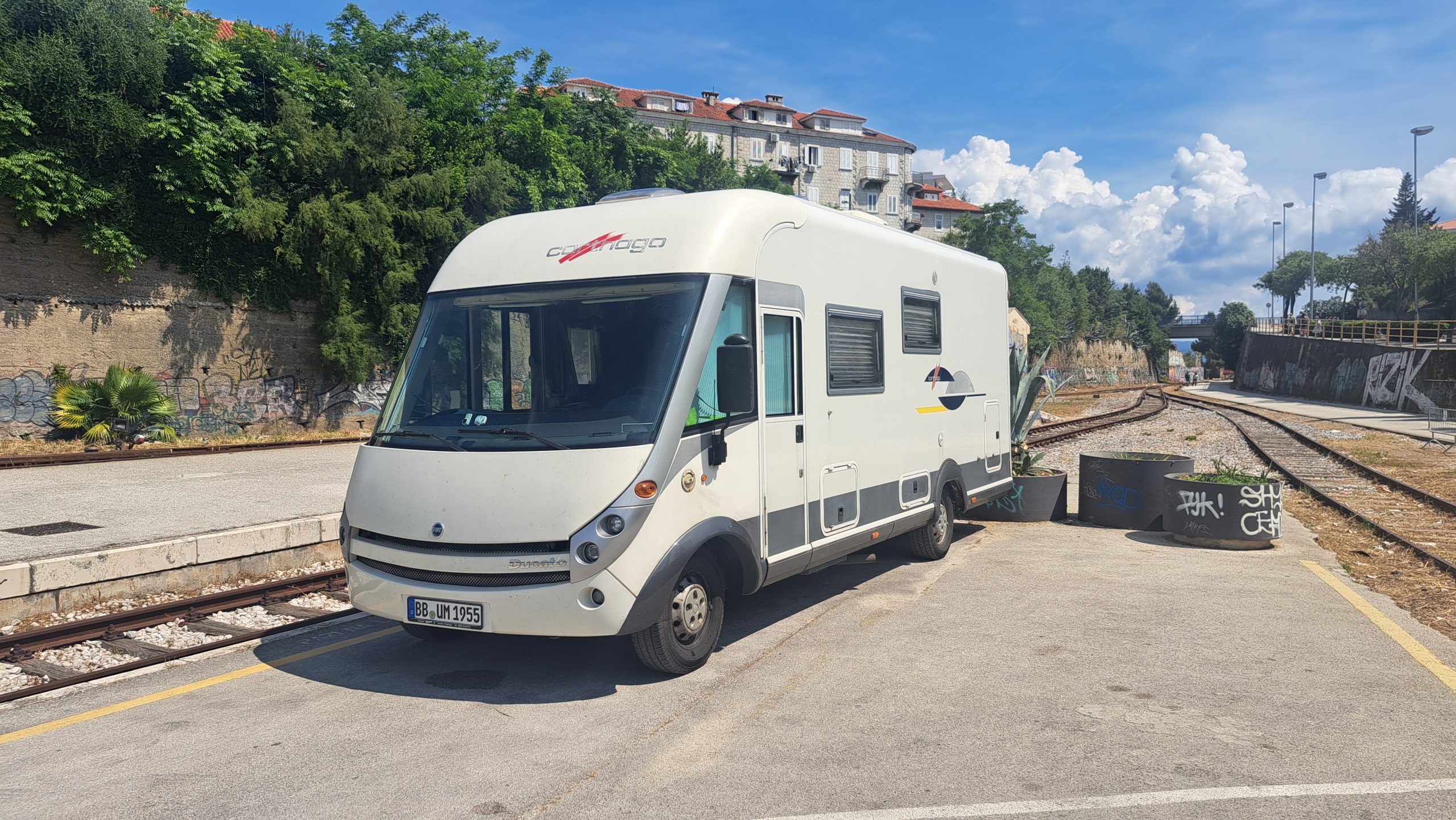 Auf dem Weg nach Albanien wollen wir in Split übernachten. Über Park4Night haben wir einen Parkplatz am Hafen/Bahnhof gefunden. Für 5€ pro Stunde und 35 pro Tag/Nacht können wir dort stehen.